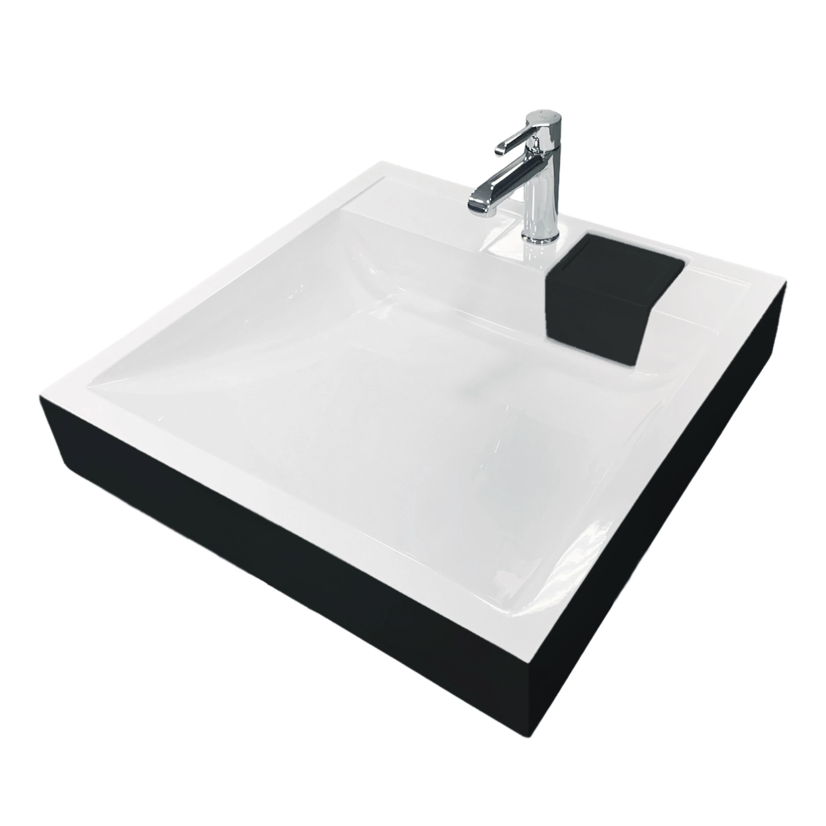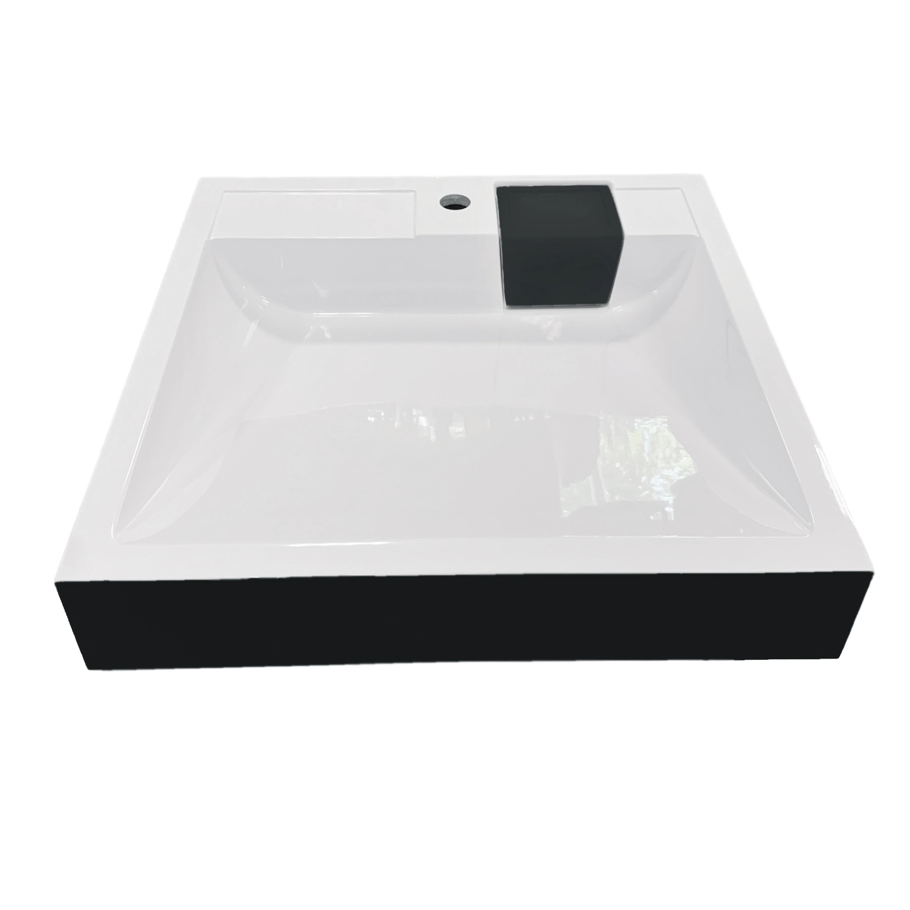 Умивальник Adamant Washer New Black/White Glossy з прямокутною формою у чорно-білому кольорі додає контрастний акцент у ванній кімнаті. Штучний камінь Solid Surface створює глянцеву поверхню розміром 595×595×115 мм для щоденного комфорту. Накладний монтаж на тумбу з отвором для змішувача полегшує встановлення без переливу.