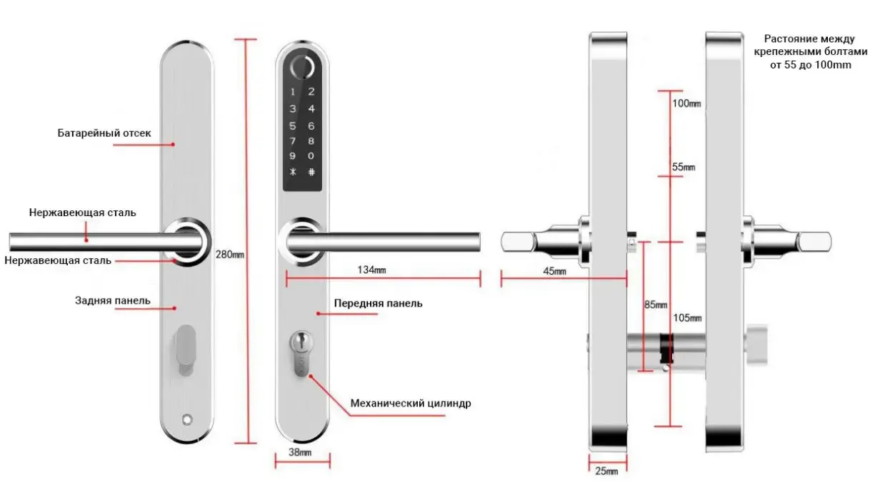 - Резервный механический ключ — гарантия доступа при неисправности электроники.