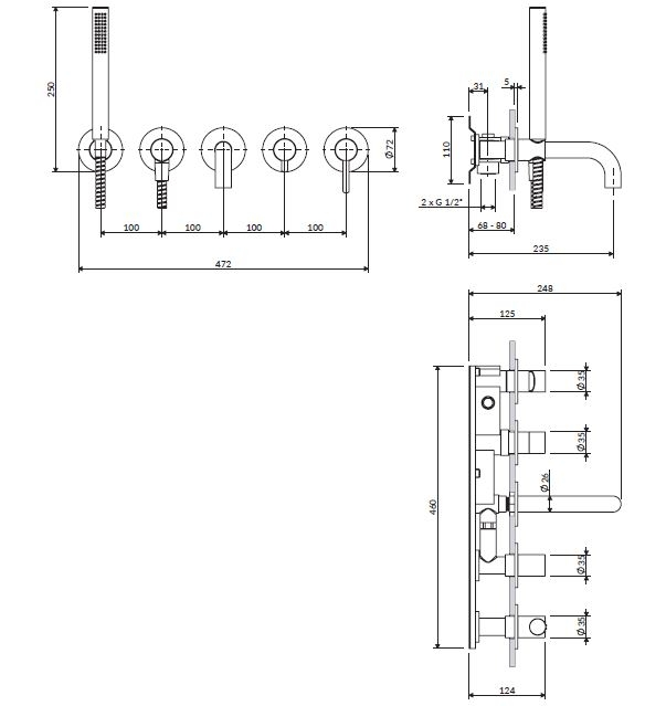 змішувач для ванни Omnires Y на 5 отворів graphite (Y1237/1SGR)