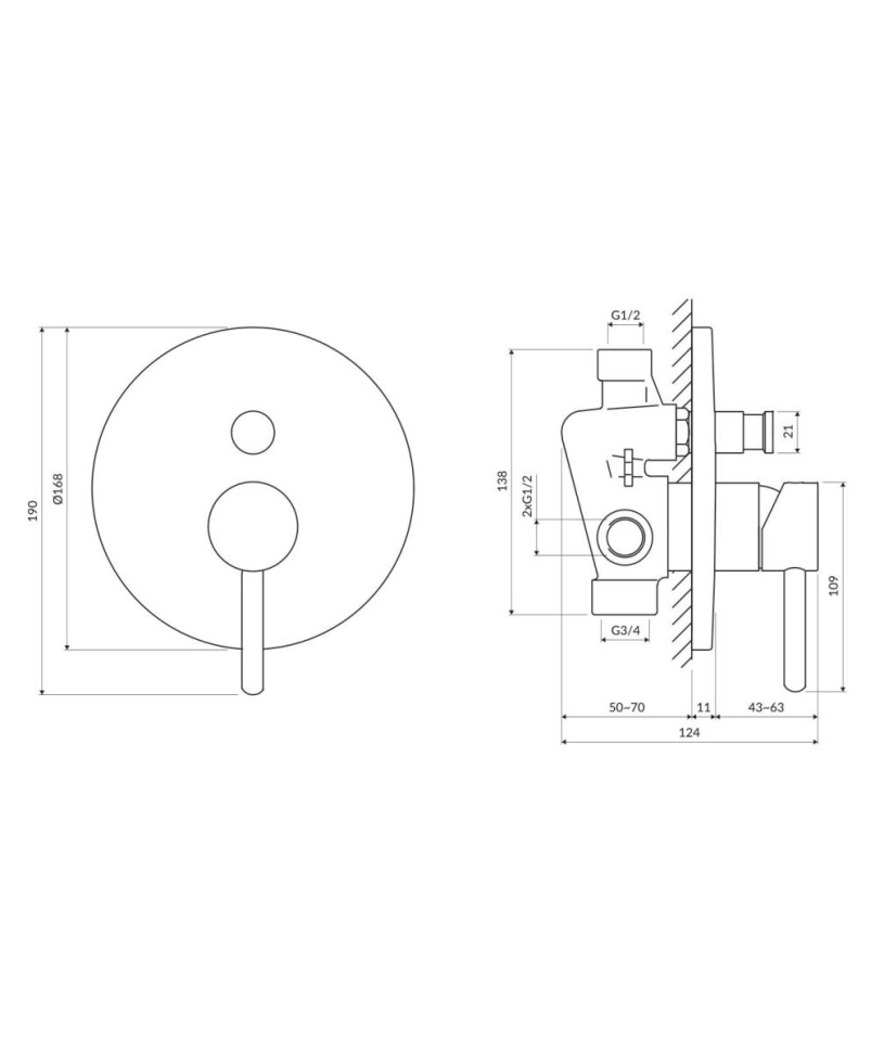 змішувач для ванни та душу прихованого монтажу Omnires Y white matt (Y1235WM)