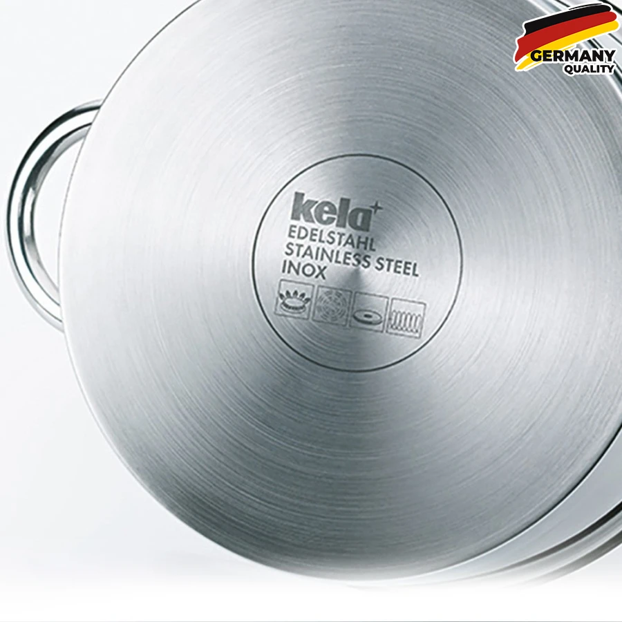 Німецький виробник посуду та начиння для кухні KELA, представляє стильну і сучасну колекцію каструль з кришкою KELA Cailin. Вона виготовлена з високоякісної харчової нержавіючої сталі 18/10 з глянцевим поліруванням. Товщина стінок - 0,6 мм. Нержавіюча сталь відрізняється міцністю та довговічністю, стійкістю до механічних пошкоджень, зручна у використанні, легко миється. У ній можна готувати та зберігати будь-які продукти, тому що вона володіє бактеріостатичними властивостями, продукти залишаються свіжими тривалий час. Капсульне дно забезпечує рівномірний розподіл тепла та характеризується високою стійкістю до деформації. Товсте дно каструлі також збереже приготовану страву гарячою значно довше, їжа в такому посуді не пригорає. Скляна кришка оснащена ручкою з нержавіючої сталі. Каструля підходить для всіх типів плит, включаючи індукційні. Можна використовувати в духовці при нагріванні до 180 ° С. Каструлі KELA Cailin можна мити в посудомийній машині.
