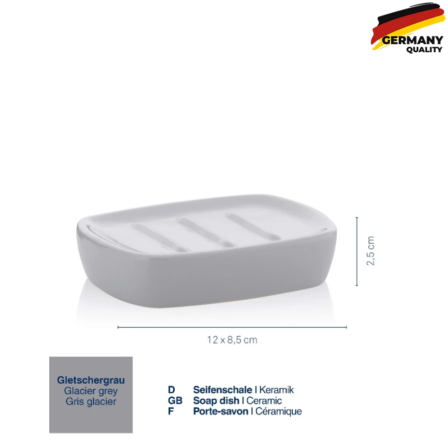 Сучасна мильниця в стилі ретро. Керамічні мильниці серії Landora & Lindano мають білий колір усередині та ванільний, льодовиково-сірий, палісандровий або м'ятно-зелений колір зовні. У керамічній мильниці розміром 12 x 8,5 x 2,5 см достатньо місця для стандартного шматка мила. У цій широкій серії для ванних кімнат ви також знайдете відповідні аксесуари (туалетні набори, чашки, текстиль для ванної та дозатори мила), а також красивий текстиль для ванної різних розмірів.