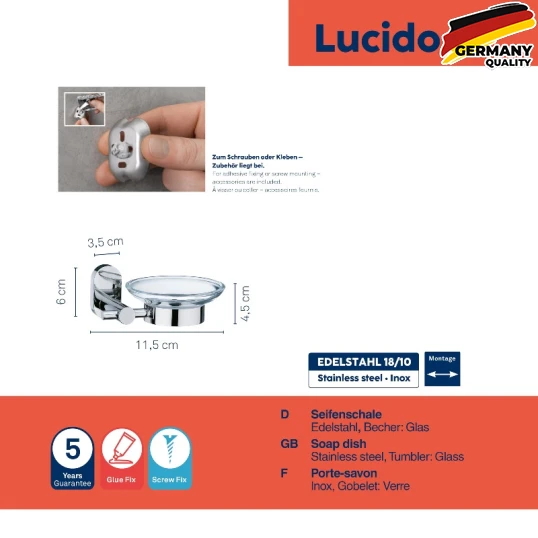 Що особливого: завдяки високоякісному монтажному клею X-trem Glue Fix свердлити більше не доведеться і ви не пошкодите цінну плитку! За бажання ви, звичайно, можете прикріпити мильницю та шурупами.