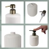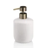 Adele - це елегантний дозатор мила з помпою із хромованого пластику золотого кольору. Дозатор для мила виготовлений з кераміки та доступний у кремово-білому, хмарно-рожевому та сріблясто-сірому кольорах. Кераміка – гарний та натуральний матеріал, з якого можна створювати найрізноманітніші конструкції. Адель має рифлену структуру, яка надає тілу відчуття ніжності. Ця структура проходить через усю серію. Для завершення серії також є мильниця, кухоль та відкритий туалетний набір.
