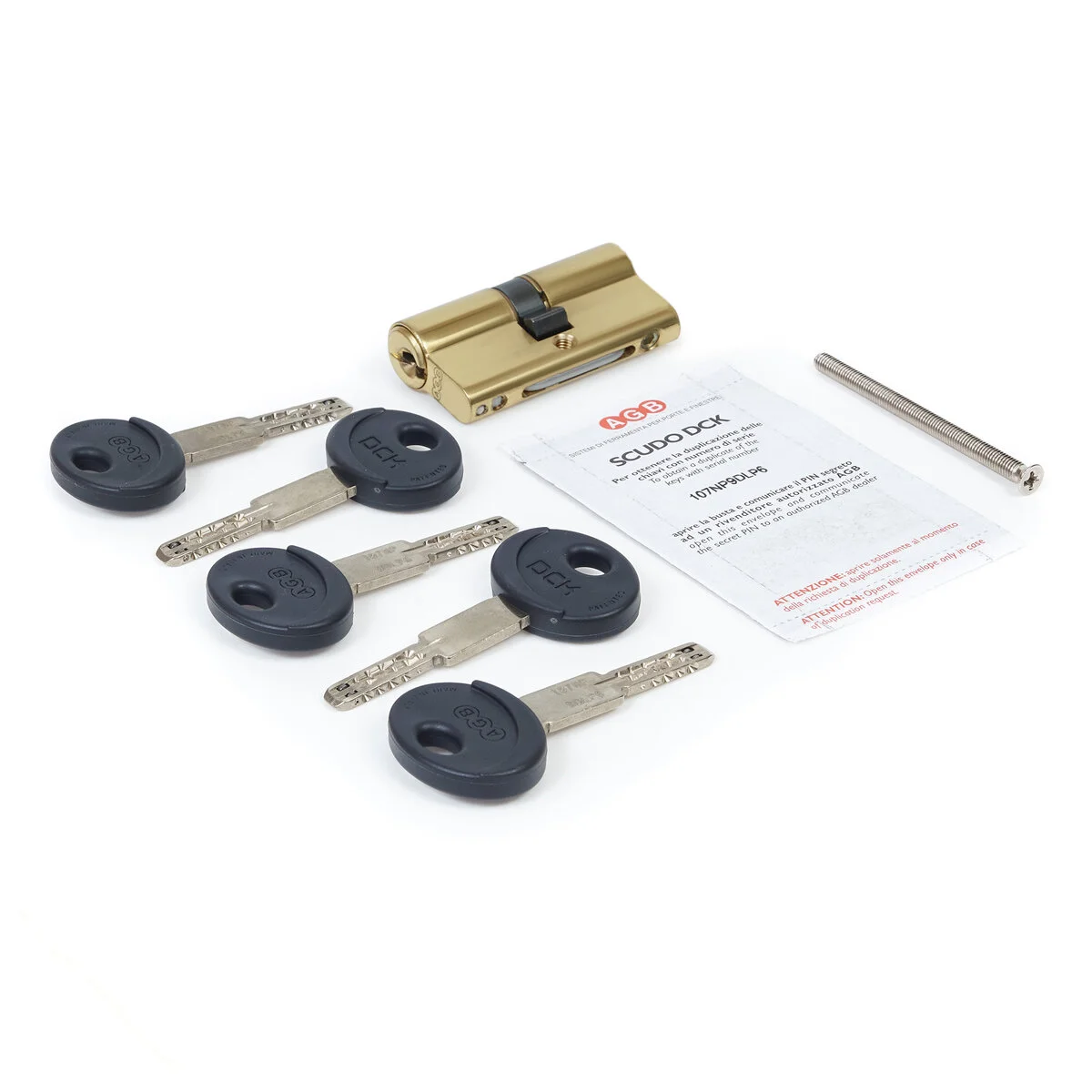 AGB DCK, циліндр ключ–ключ 90 мм (30×60), латунь полірована — надійний та довговічний циліндровий механізм для врізних дверних замків, призначений для вхідних та міжкімнатних дверей. Формат ключ–ключ дозволяє відкривати й закривати двері з обох боків, що забезпечує максимальну зручність у користуванні.