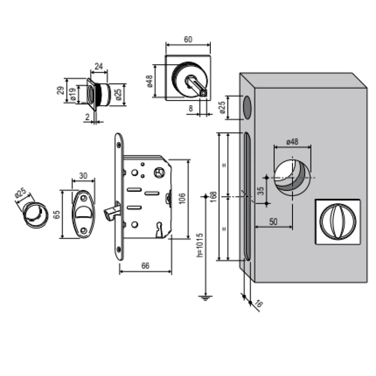 - Діаметр монтажного отвору під корпус замка 25 мм