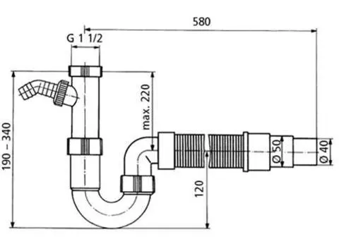 Сифон 1 1/2" Blanco 137262 для моек с гофрированной трубкой. Выход на 40 и 50 мм