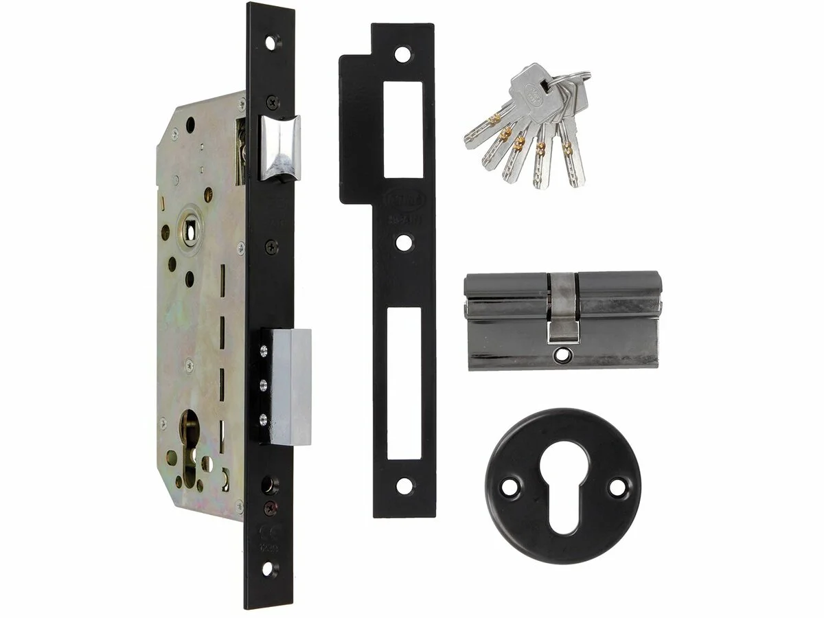 AMIG 340 + циліндр 60 мм Чорний — універсальний і стильний однориґельний замок із циліндром, який поєднує міцність, надійність і сучасний дизайн для будь-яких дверей.