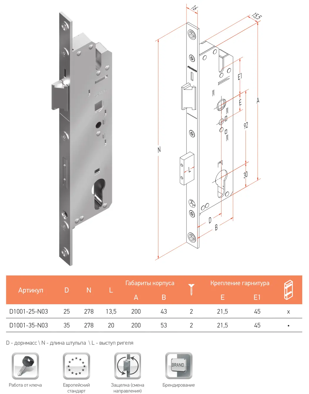 AXOR D1001-35-N03 — це надійний замок для пластикових дверей із товстим профілем, який забезпечує стабільне закривання та тривалий ресурс роботи завдяки міцній конструкції та цинковому покриттю.