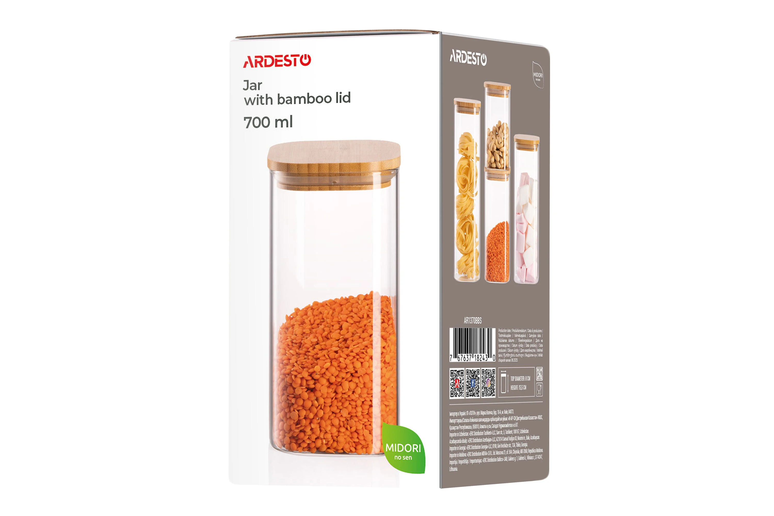 Банка для зберігання ARDESTO Midori 700мл, скло, бамбук, квадратна, прозорий