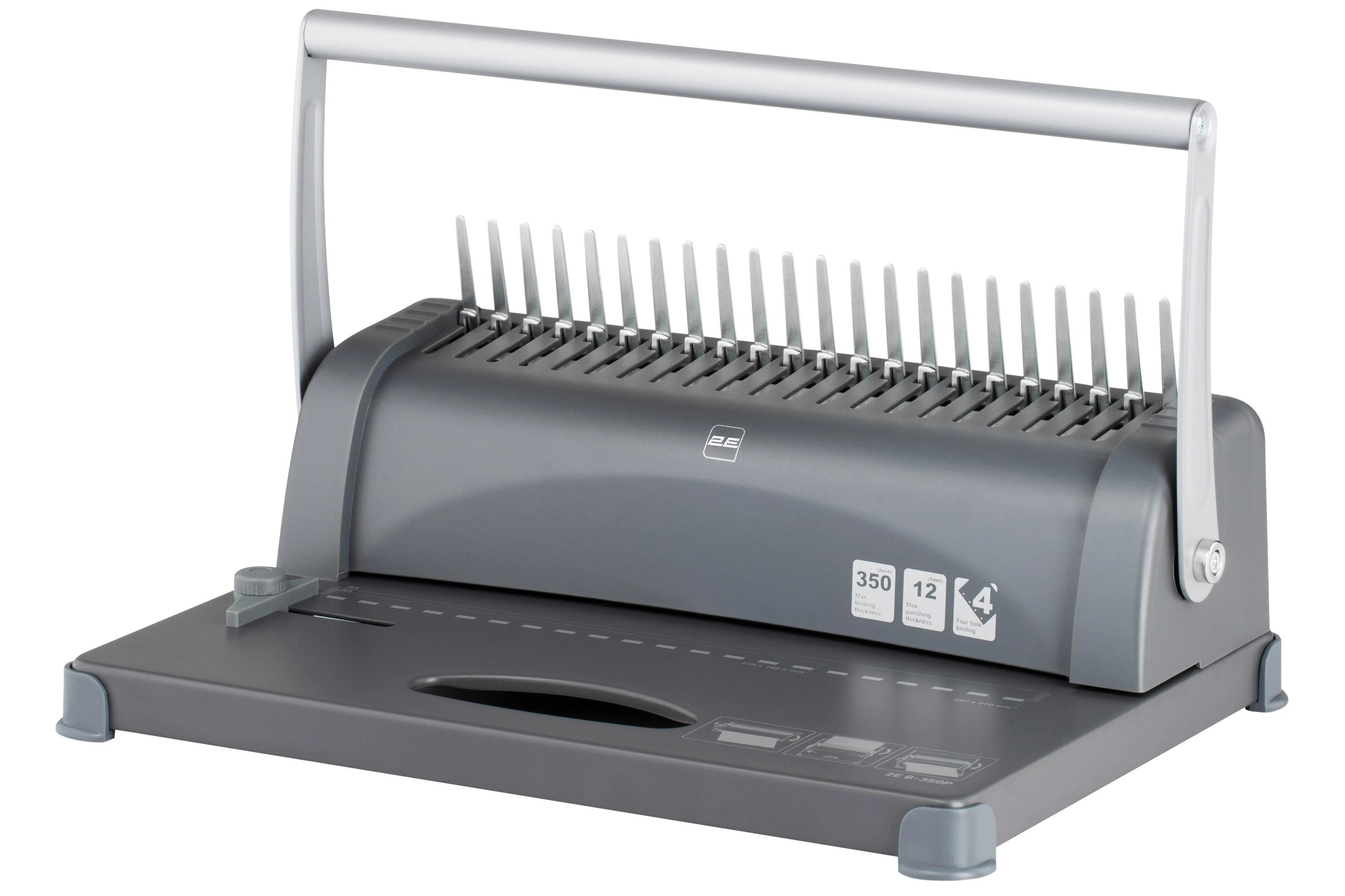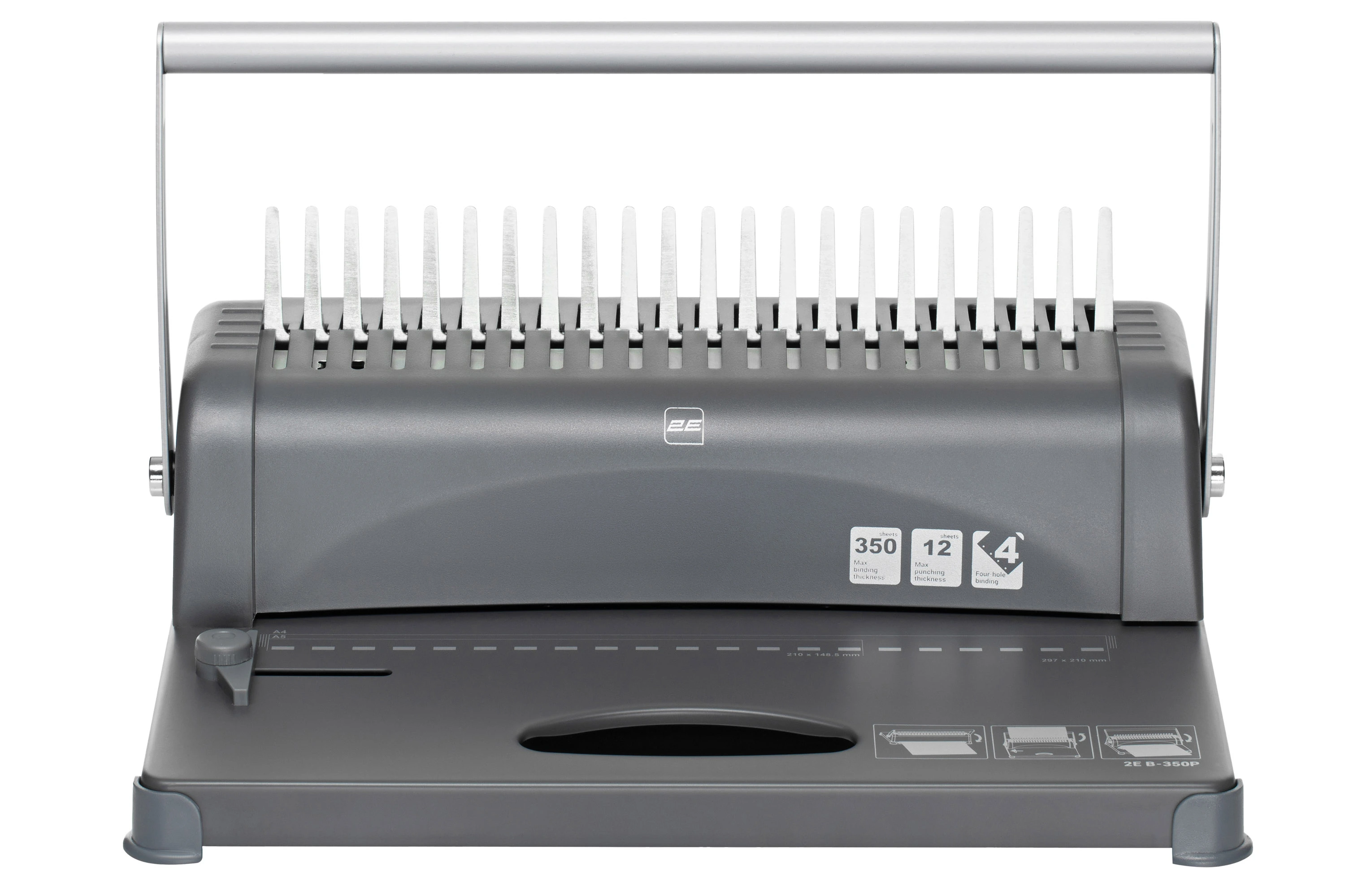 Біндер 2E є сучасним пристроєм для впорядкування паперів і документів, який значно полегшує щоденну роботу з ними співробітникам офісів, банків і різних компаній. Пристрій одночасно перфорує 12 аркушів стандартного розміру. Продуктивність біндера висока – за один раз він може зшити на пружину діаметром 6 – 51 мм блоки до 350 аркушів.