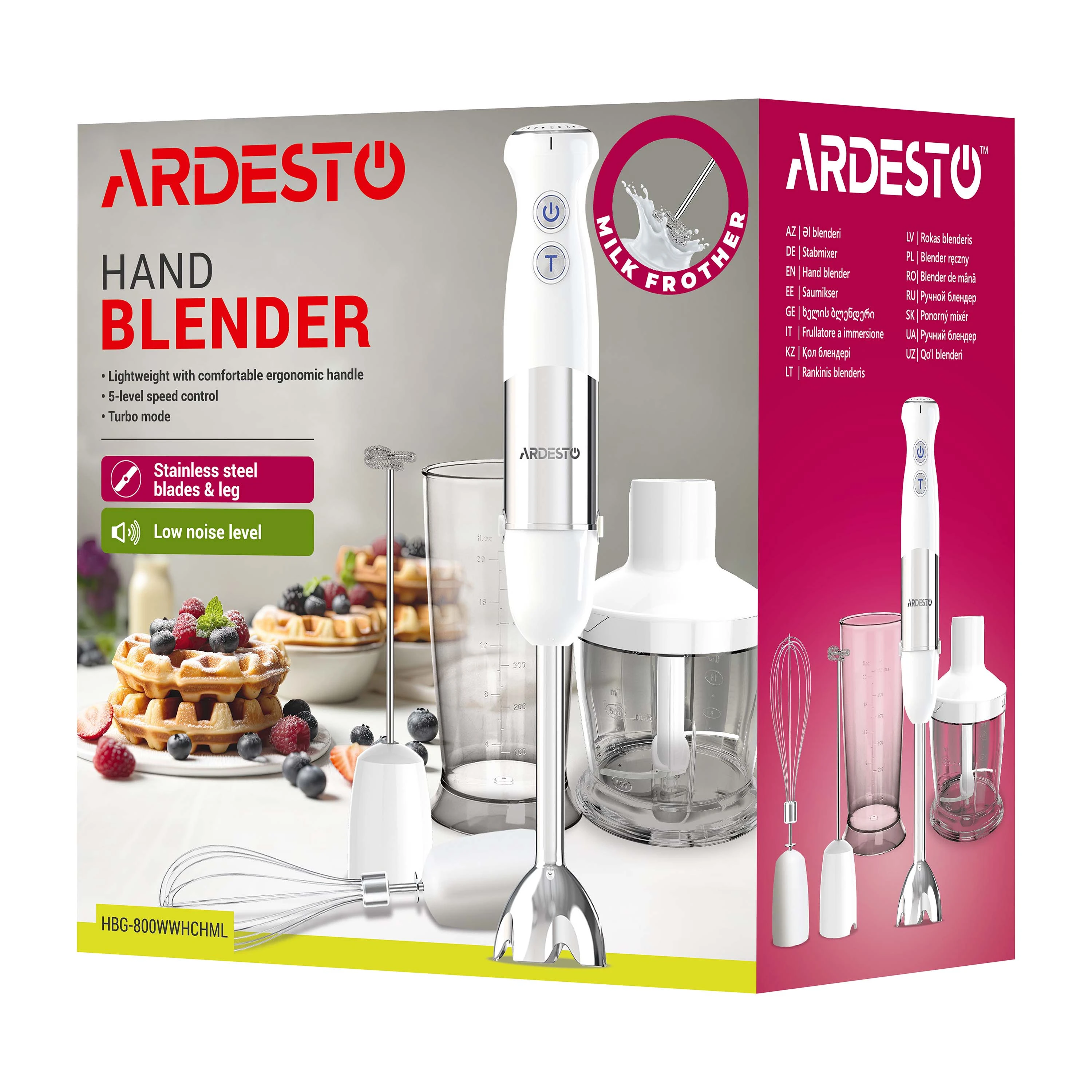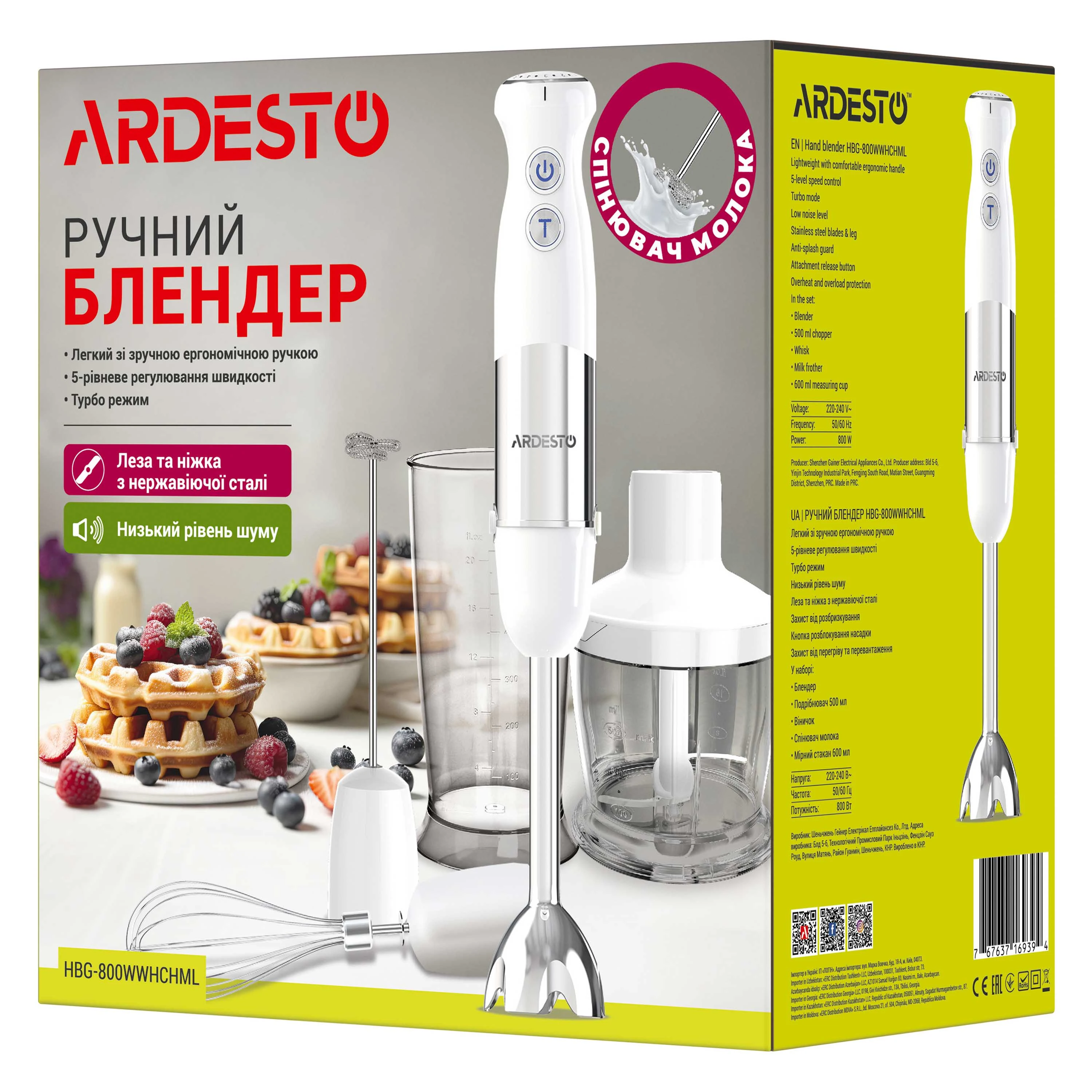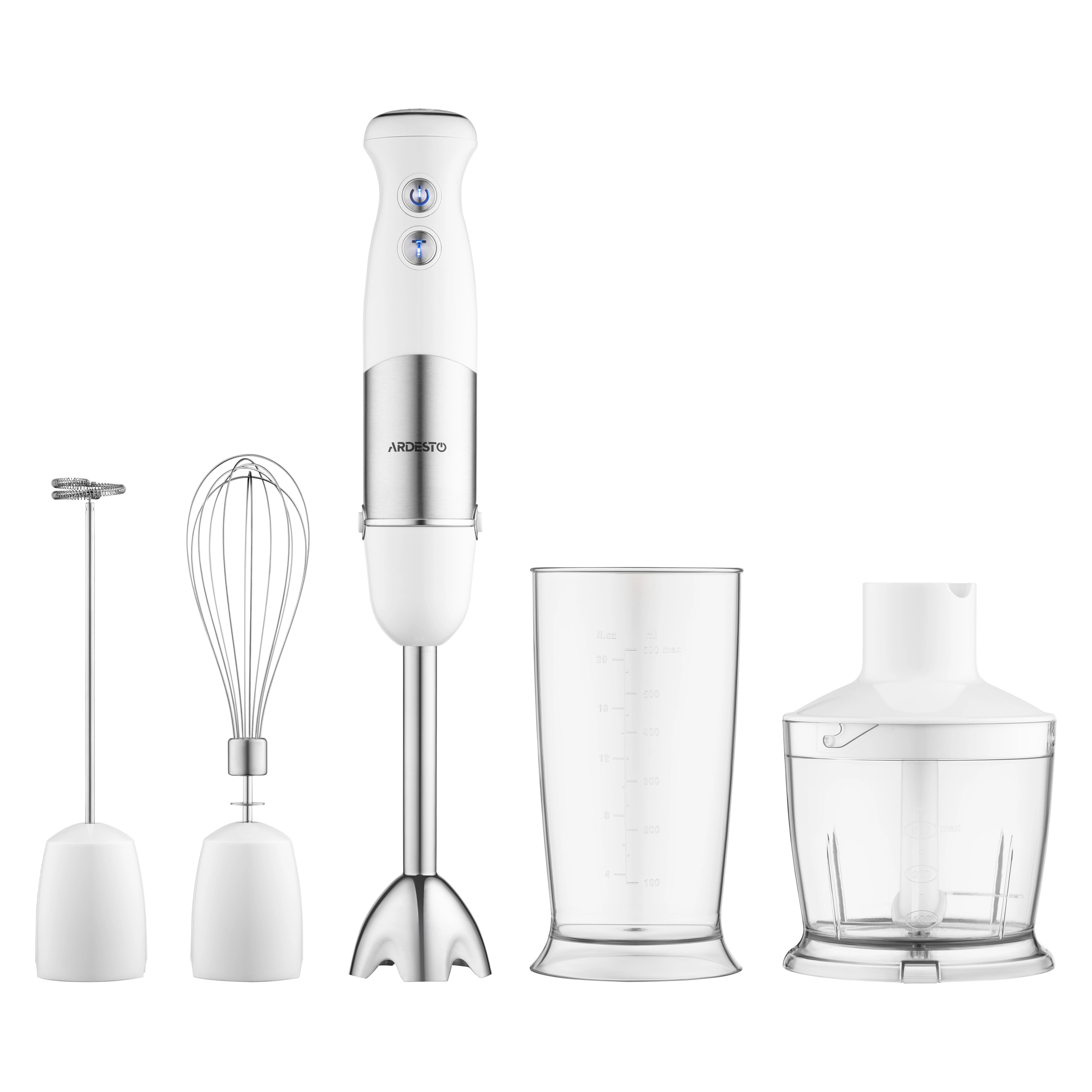 Блендер Ardesto занурювальний HBG-800WWHCHML, 800Вт, 4в1, чаша-600мл, чопер 500мл, біло-сріблястий