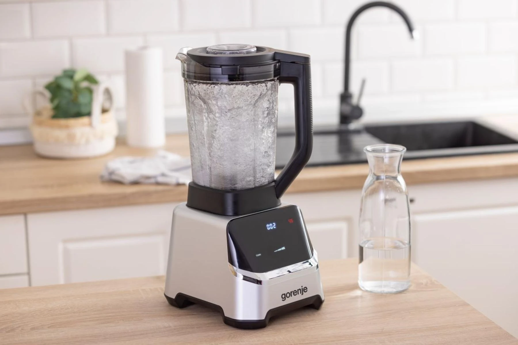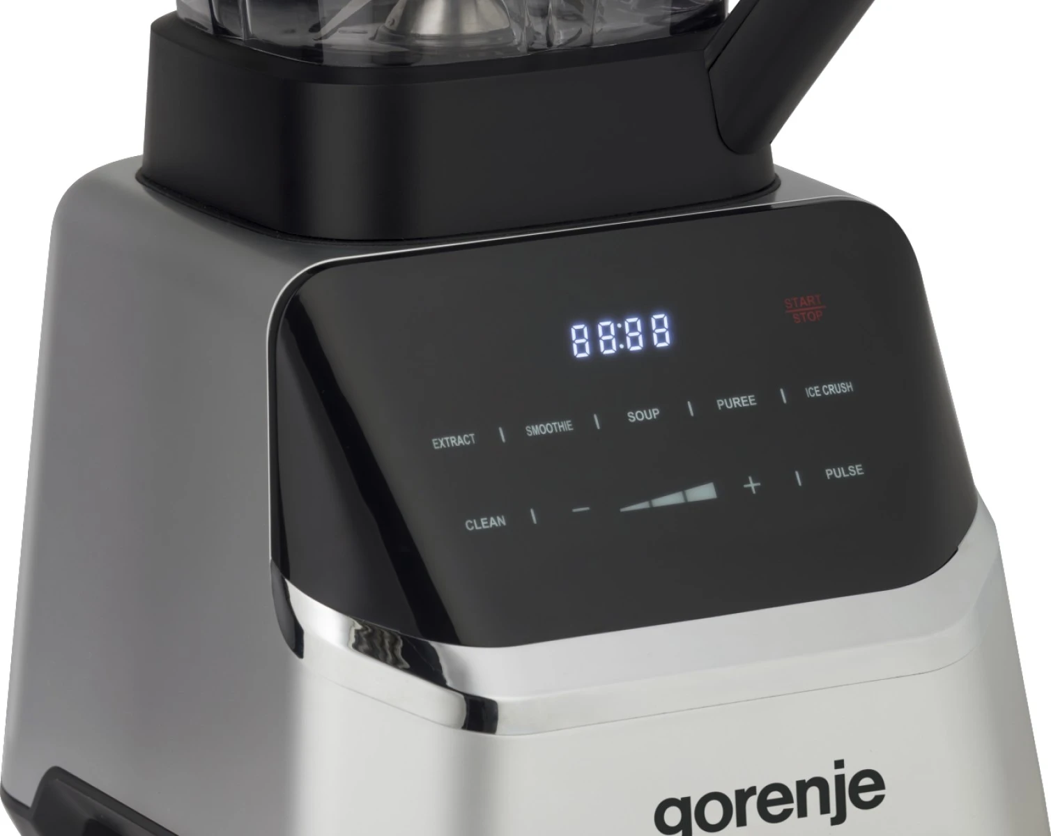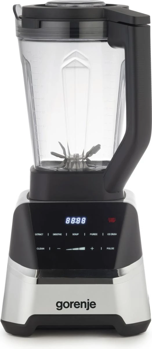 Блендер Gorenje стаціонарний 1500Вт, чаша-2000мл, дисплей, подрібнювач, чорний-нерж