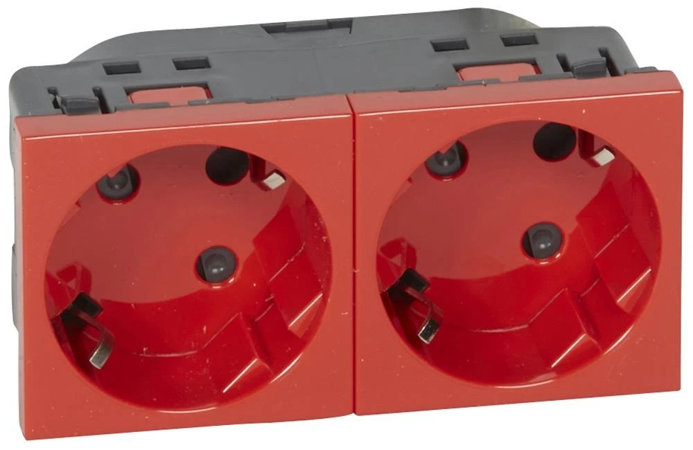 Блок розеток Legrand Mosaic 077612 — червоний подвійний блок 2×Schuko (німецький стандарт) на 4 модулі для встановлення в кабельні канали DLP та магістральні короби Quintella. Номінал 16 А, 250 В, гвинтові клеми, з захисними шторками та червоною лицьовою панеллю (для позначення резервного/аварійного живлення). Повністю сумісний із серією Mosaic: кріпиться на стандартний супорт 4 модулі (080254/080255). Ідеально для серверних, технічних приміщень, ЦОДів та промислових об’єктів, де потрібно чітко розрізняти резервні лінії живлення.