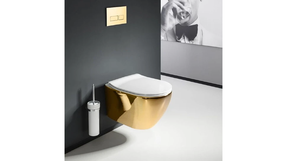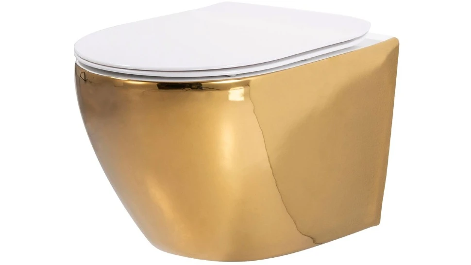 чаша унітазу Rea Carlo Flat Mini Gold/White без обідка, сидіння дюропластів повільно падаюче (REA-C0