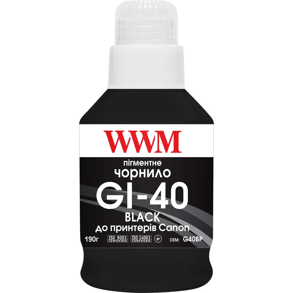 Чорнило WWM GI-40 для Canon G5040/G6040 190г Black пігментне (G40BP)