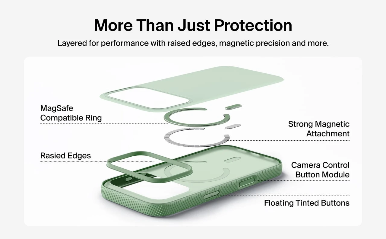 Belkin Grip Series для iPhone 17 Pro Max (MSA036HQSE, Sage) — класичний магнітний чохол у кольорі Sage (шавлія) з протиковзною текстурою, захистом від падінь до 2 м і повною сумісністю з MagSafe. Тонкий корпус із TPU (з перероблених матеріалів), вигнуті краї, поліровані кнопки та напівпрозоре покриття з м’яким фінішем. Стильний природний відтінок для тих, хто цінує елегантність і практичність.