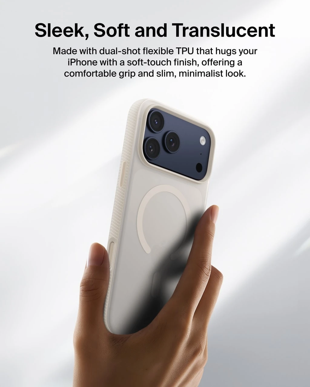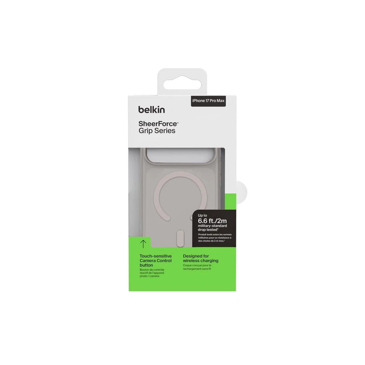 Belkin Grip Series для iPhone 17 Pro Max (MSA036HQSA, Sand) — класичний магнітний чохол у кольорі Sand (пісочний) з протиковзною текстурою, захистом від падінь до 2 м і повною сумісністю з MagSafe. Тонкий корпус із TPU (з перероблених матеріалів), вигнуті краї, поліровані кнопки та напівпрозоре покриття з м’яким фінішем. Ідеальний баланс естетики, комфорту й надійності — універсальний вибір для будь-якого стилю.