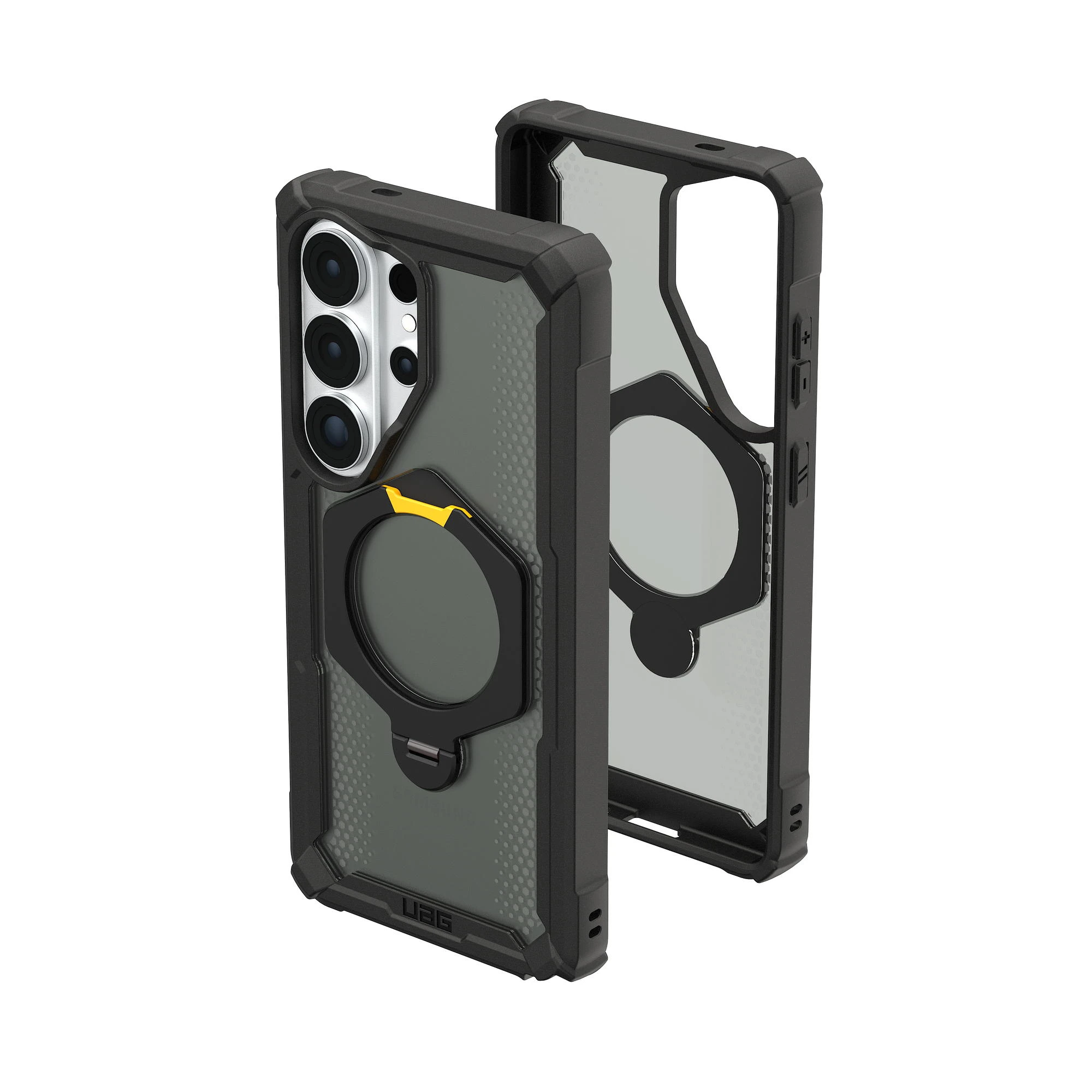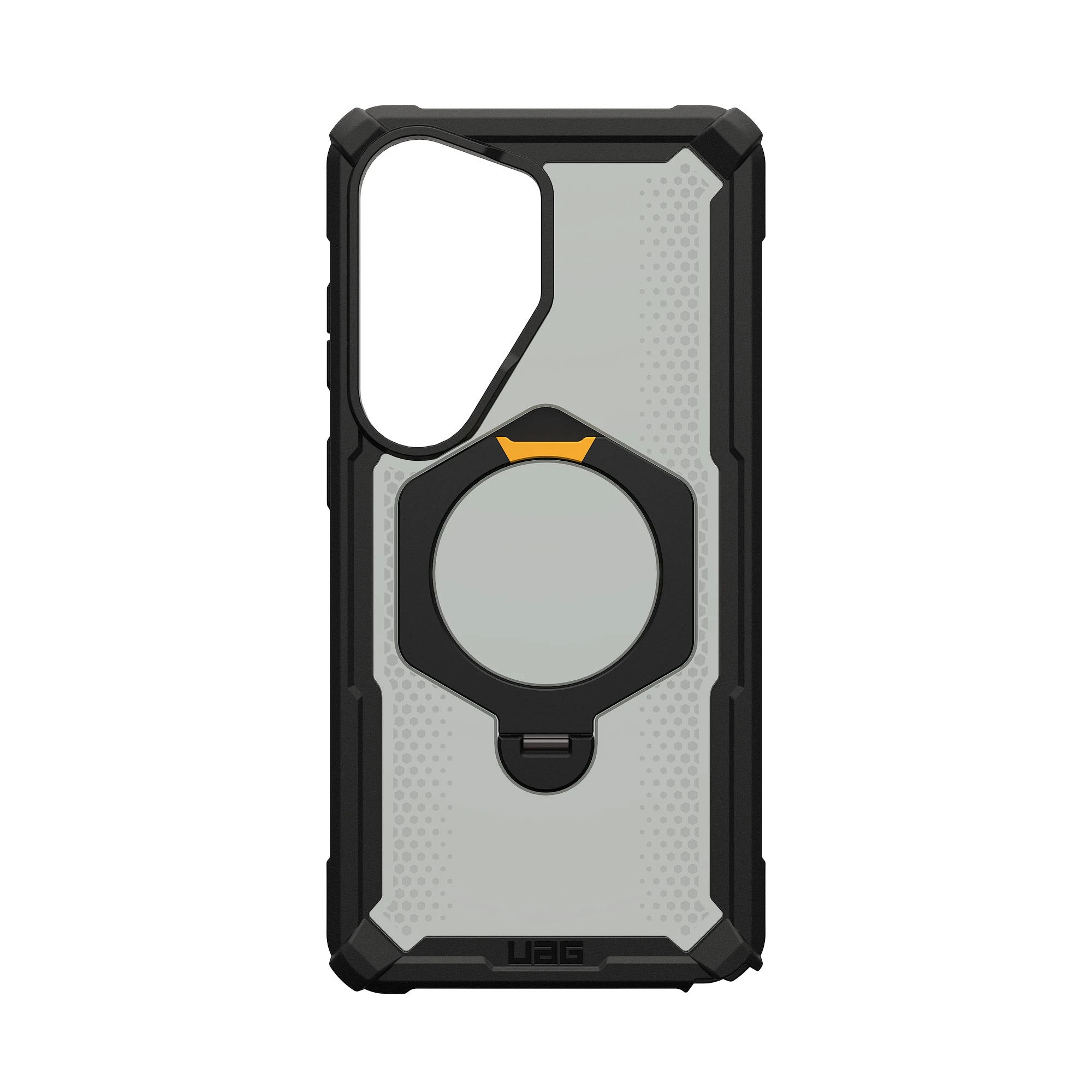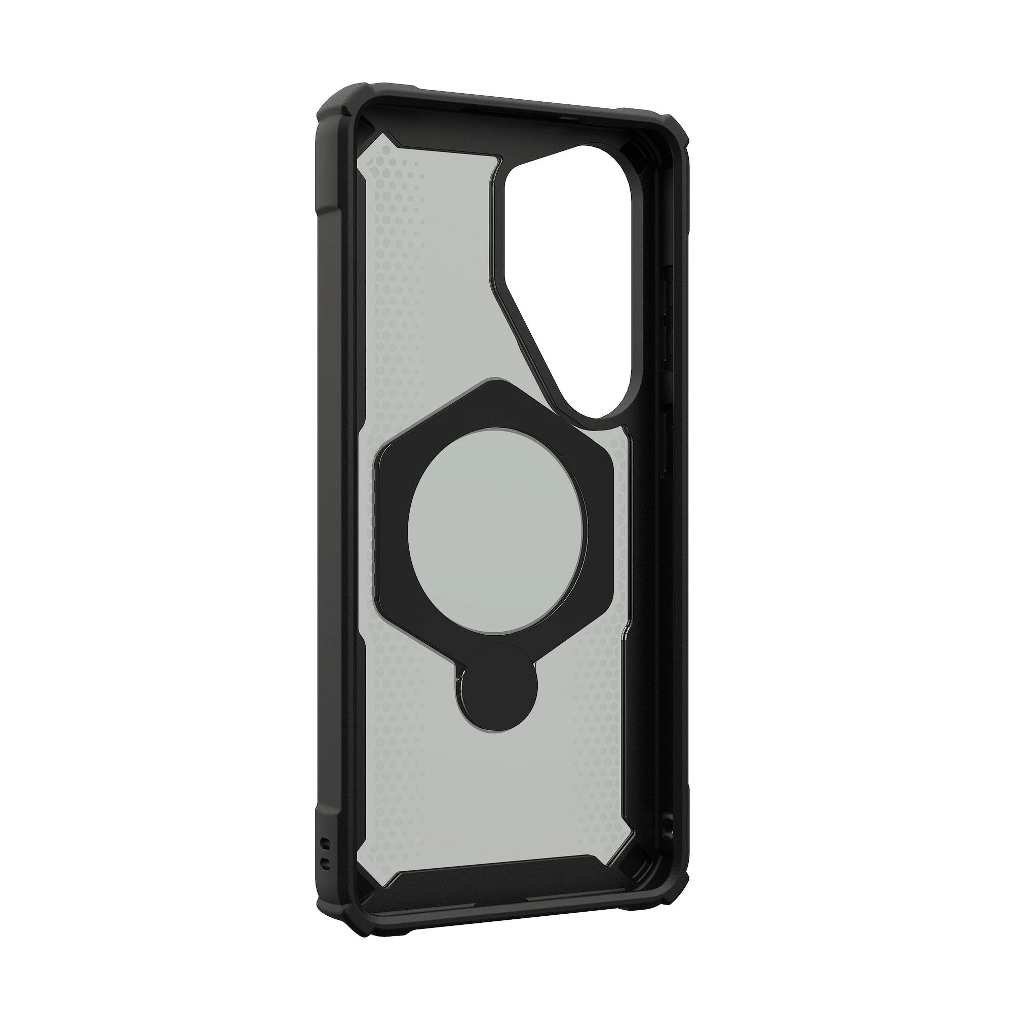 Чохол UAG Plasma XTE 360 with Magnet для Samsung Galaxy S26 Ultra поєднує ударопоглинальну конструкцію, магнітний модуль і металеву підставку з обертанням на 360°. Перфорована стільникова структура всередині ефективно розсіює ударне навантаження. Виступний бортик захищає дисплей під час розміщення екрана донизу. Підставка забезпечує регульовані кути перегляду в портретному та ландшафтному режимах.