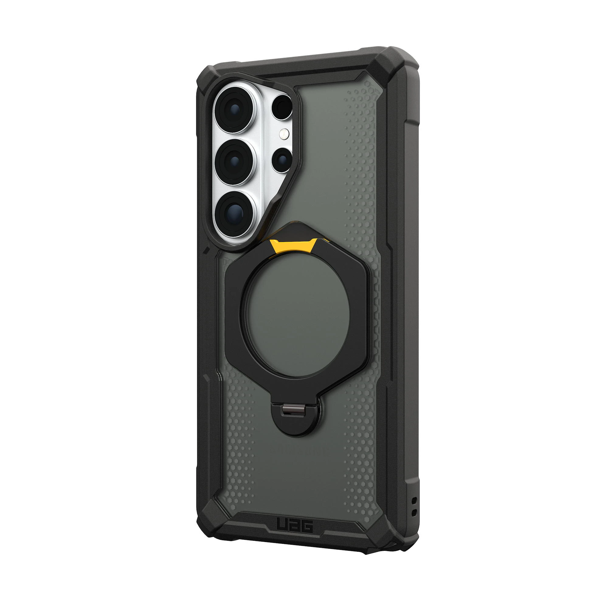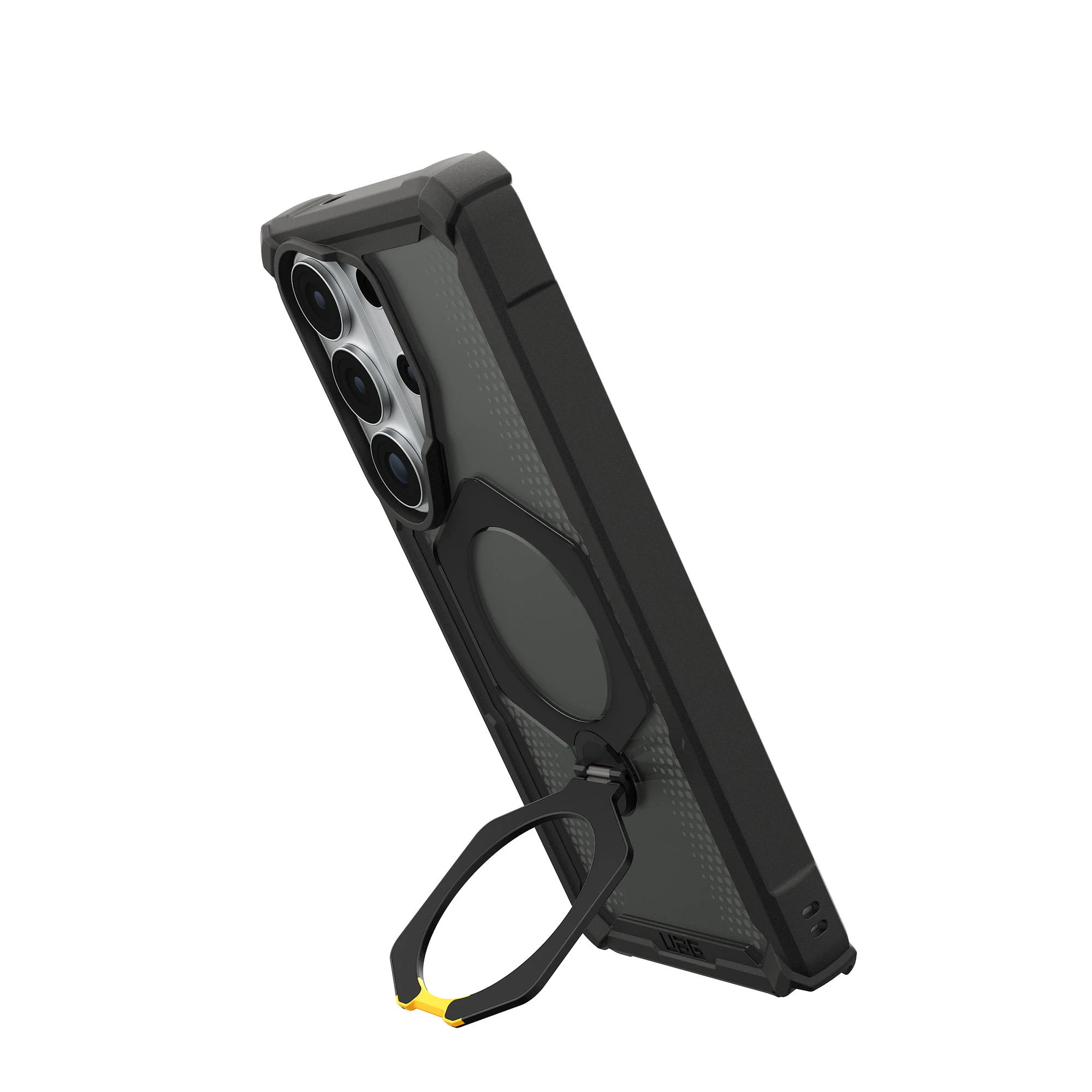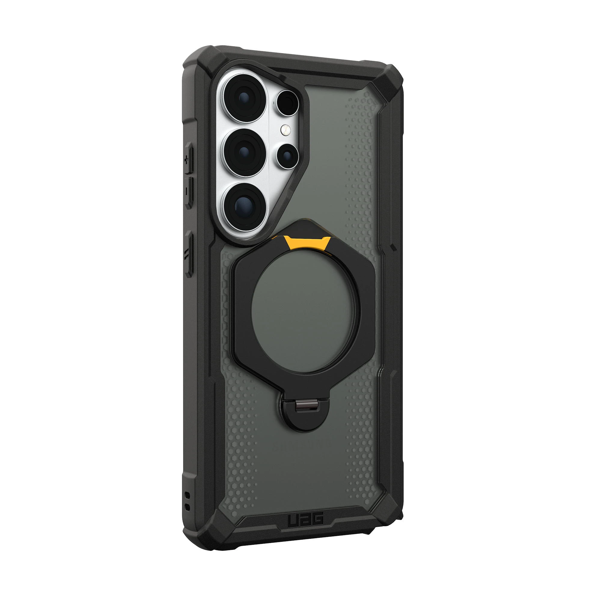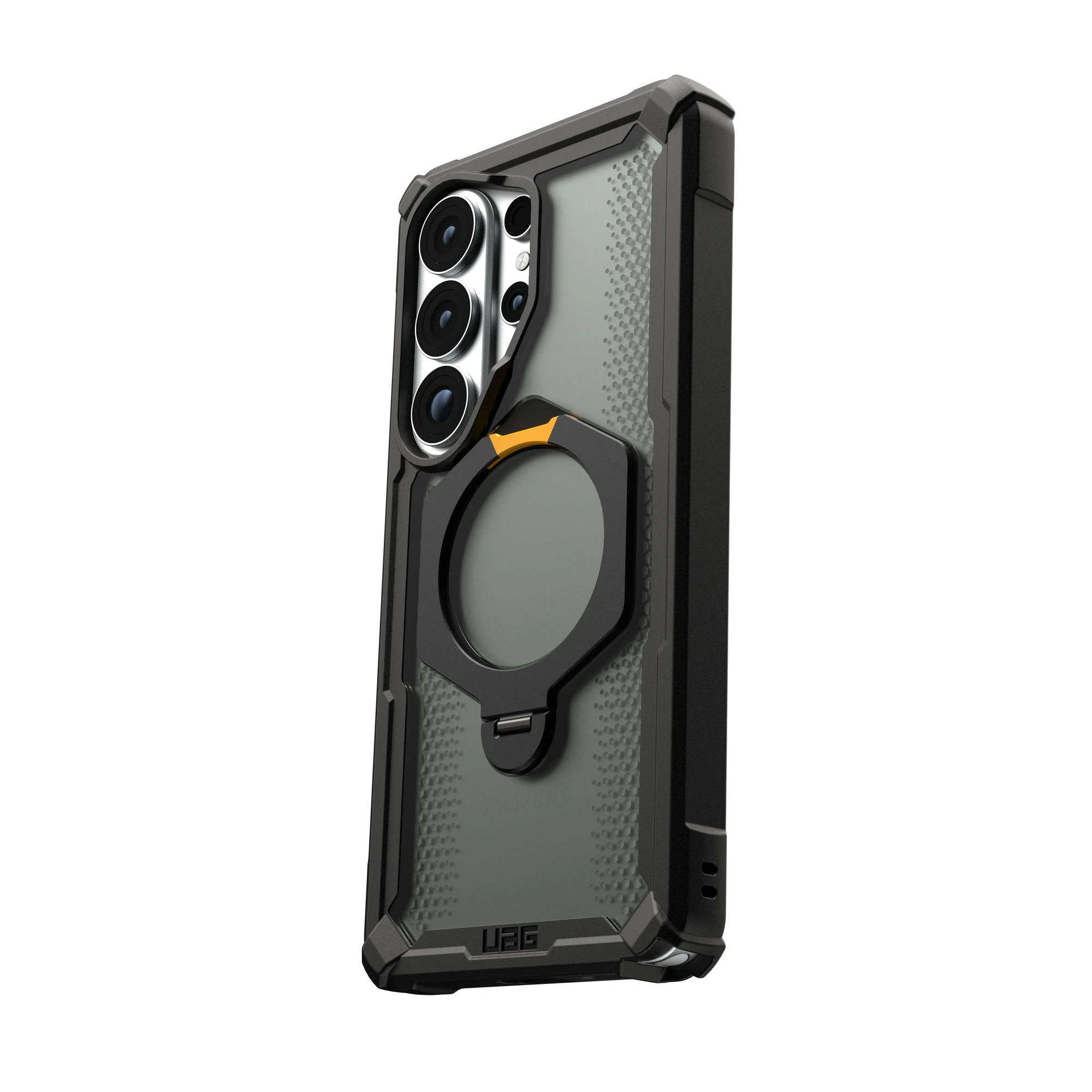 Чохол UAG Plasma XTE 360 with Magnet для Samsung Galaxy S26 Ultra поєднує ударопоглинальну конструкцію, магнітний модуль і металеву підставку з обертанням на 360°. Перфорована стільникова структура всередині ефективно розсіює ударне навантаження. Виступний бортик захищає дисплей під час розміщення екрана донизу. Підставка забезпечує регульовані кути перегляду в портретному та ландшафтному режимах.