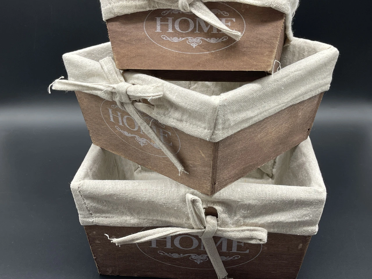 Ящик декоративний дерев'яний з тканиною, 22х22х11см, 3шт, Колір "коричневий"