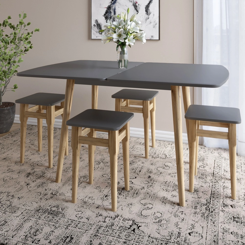Дерев'яний розкладний обідній стіл LION Маямі-3 Антрацит 90х60/90х120 (LION-041261) ТОП