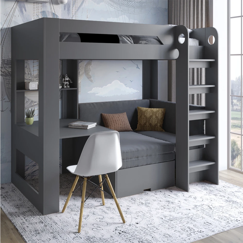 Дитяче двоярусне ліжко LION Флай 90х190 см з вбудованим столом Антрацит/Лілі-95 (LION-041632)