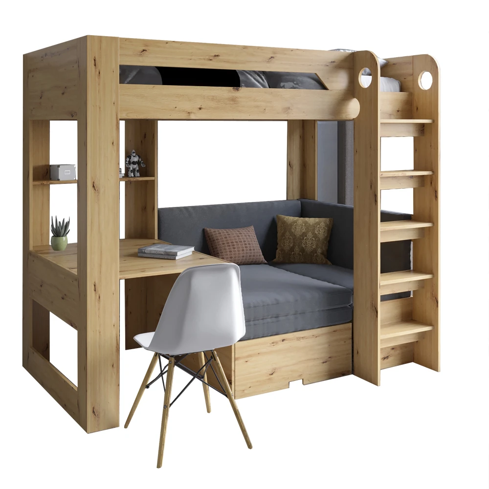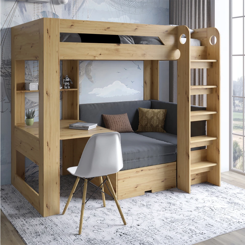 Особенностью модели является встроенный стол, позволяющий максимально эффективно использовать пространство. Вашему ребенку будет удобно заниматься домашними заданиями или творчеством, не отвлекаясь от любимого места отдыха. Это решение подходит для активных детей, которые ценят комфорт и функциональность.