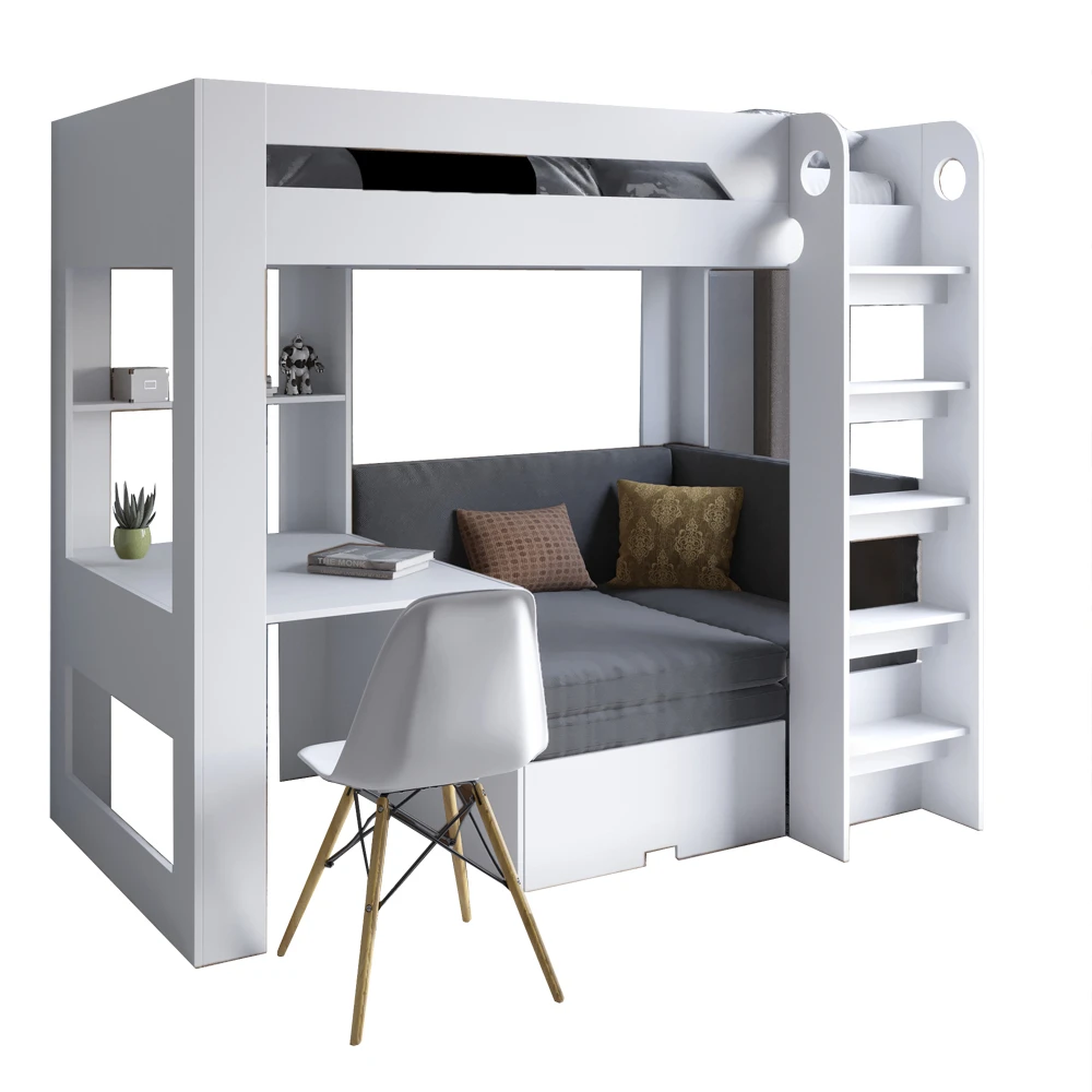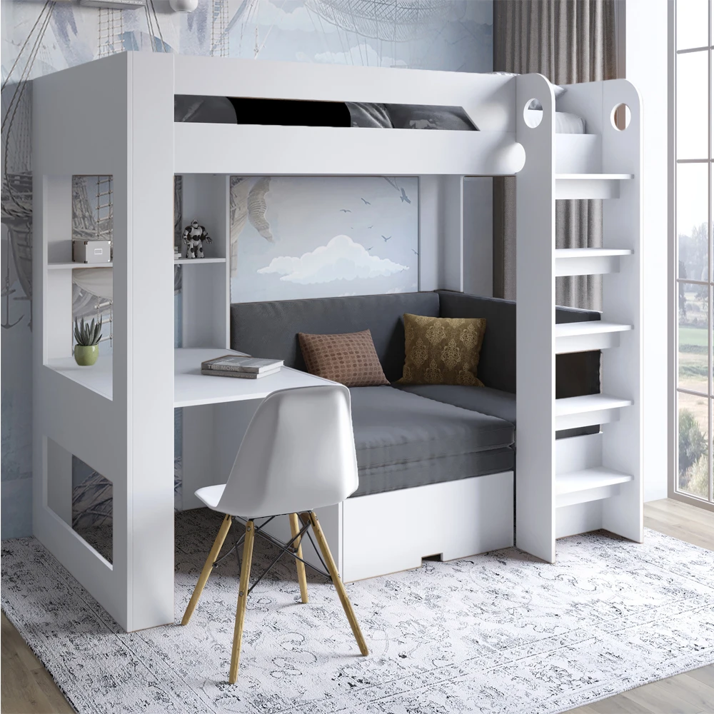 Дитяче двоярусне ліжко LION Флай 90х190 см з вбудованим столом Німфея Альба (білий) (LION-041643) ТО