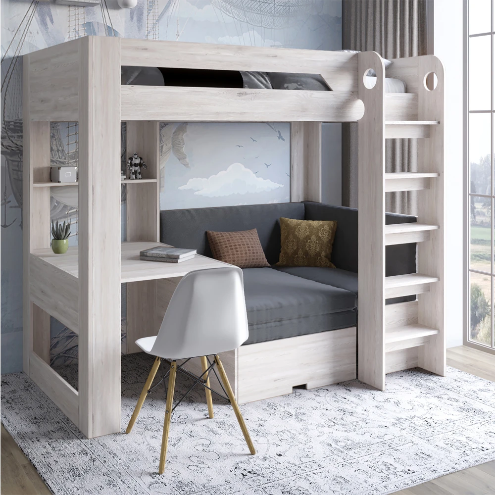 Кровать оснащена встроенным столом Самоа, идеально подходящим для обучения и творчества. Ваш малыш сможет удобно выполнять домашнее задание или заниматься любимыми хобби, не отвлекаясь на поиски места для работы. Это решение оптимизирует пространство и делает комнату более организованной.