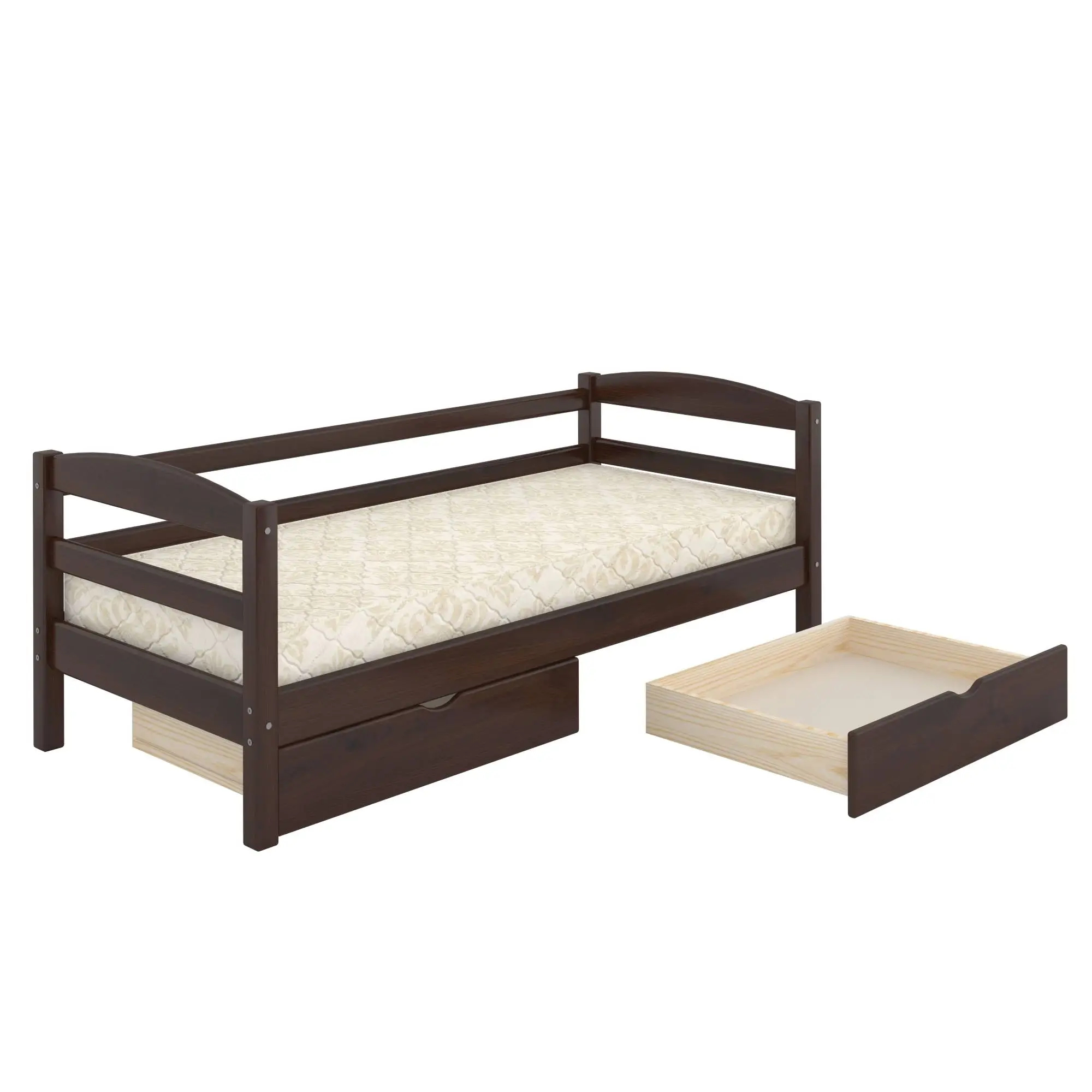 Дитяче ліжко Mebigrand Чикаго Літл Горіх темний 80х190 см із заднім бортиком та ящиками (DMBG-2609)