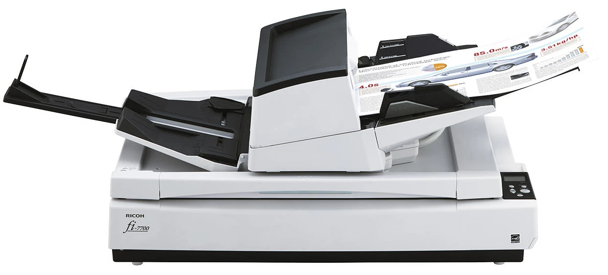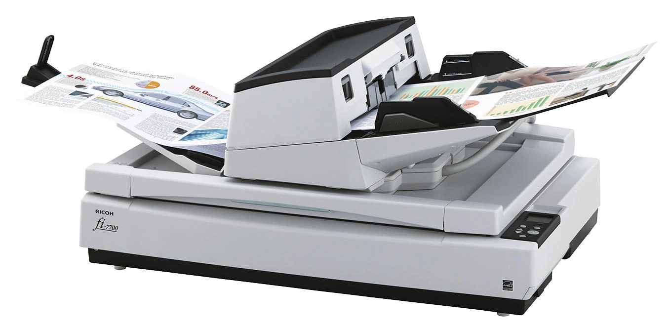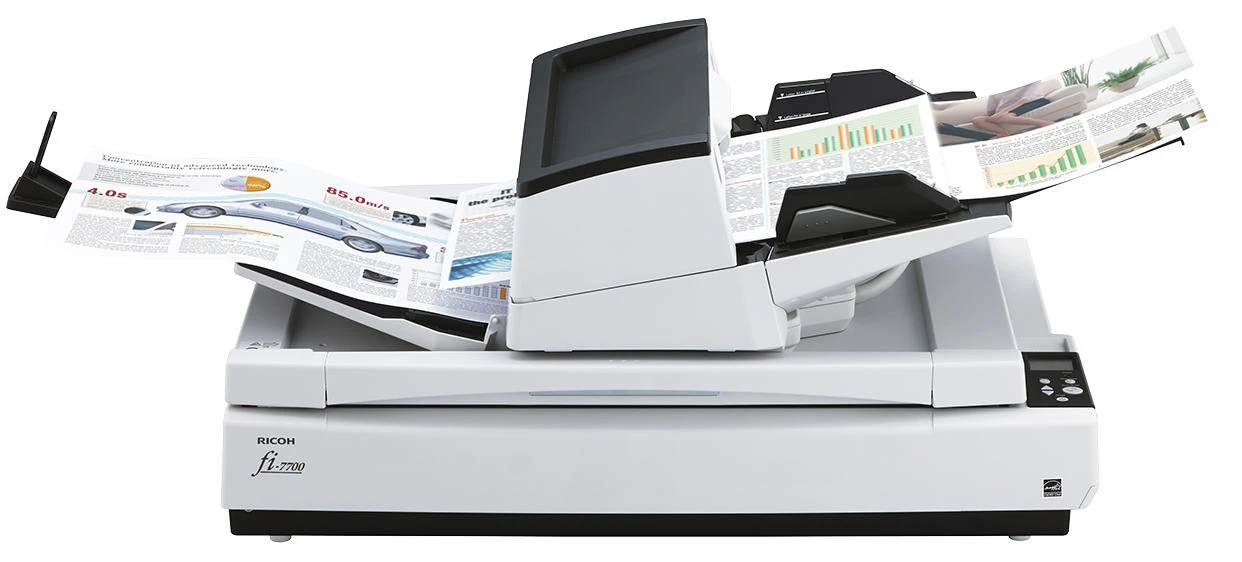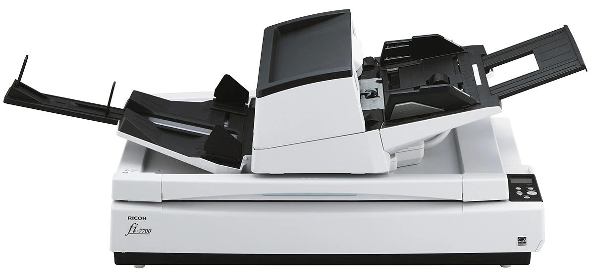 Ricoh fi-7700 – багатофункціональний документ-сканер формату A3, що поєднує автоподатчик, ручну подачу та планшетний блок. Три кольорові ПЗС-матриці забезпечують двостороннє сканування та окрему обробку матеріалів на планшеті. Пристрій підтримує роботу з документами різних розмірів, включно з довгими сторінками та пластиковими картками. Велика місткість автоподатчика та система захисту паперу сприяють стабільному робочому процесу. Розширені інструменти обробки зображень допомагають оптимізувати якість цифрових копій без додаткових дій.