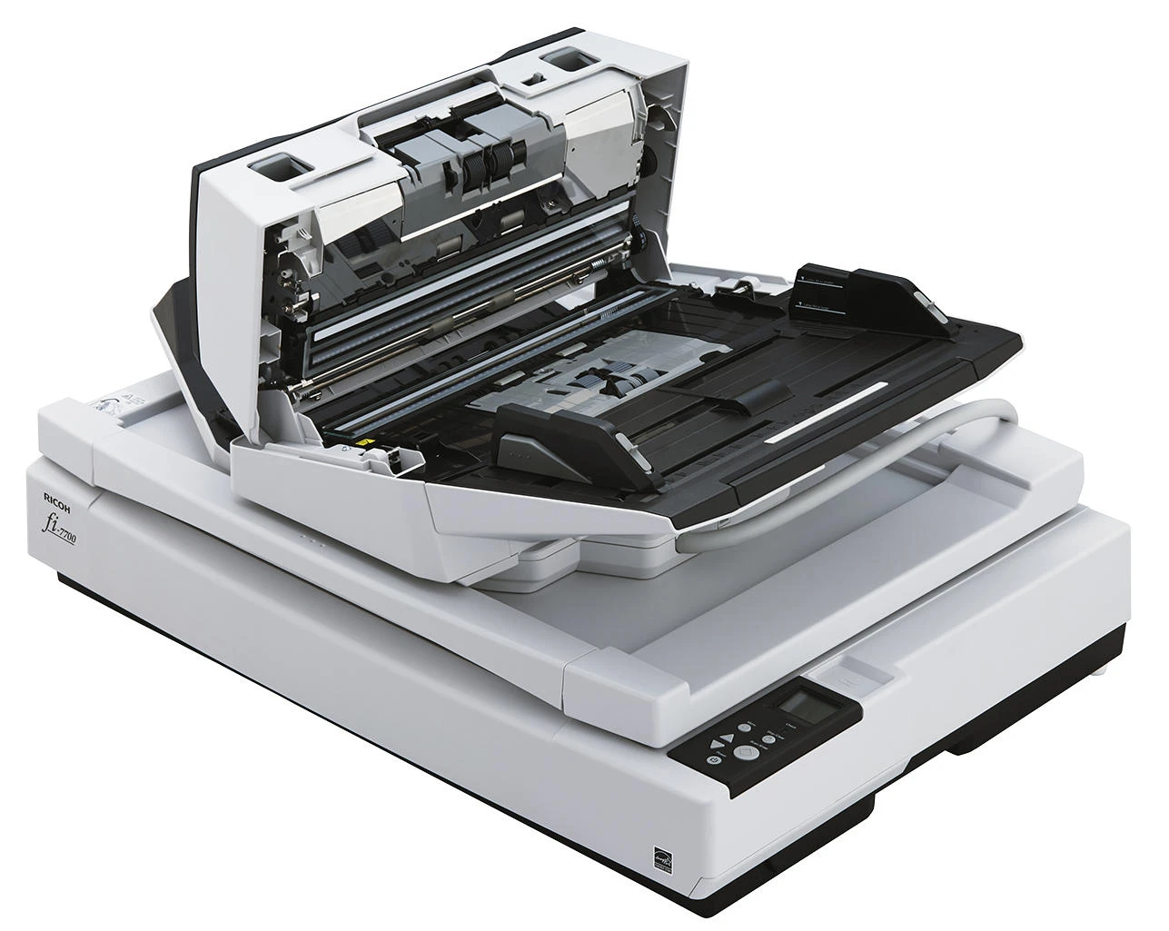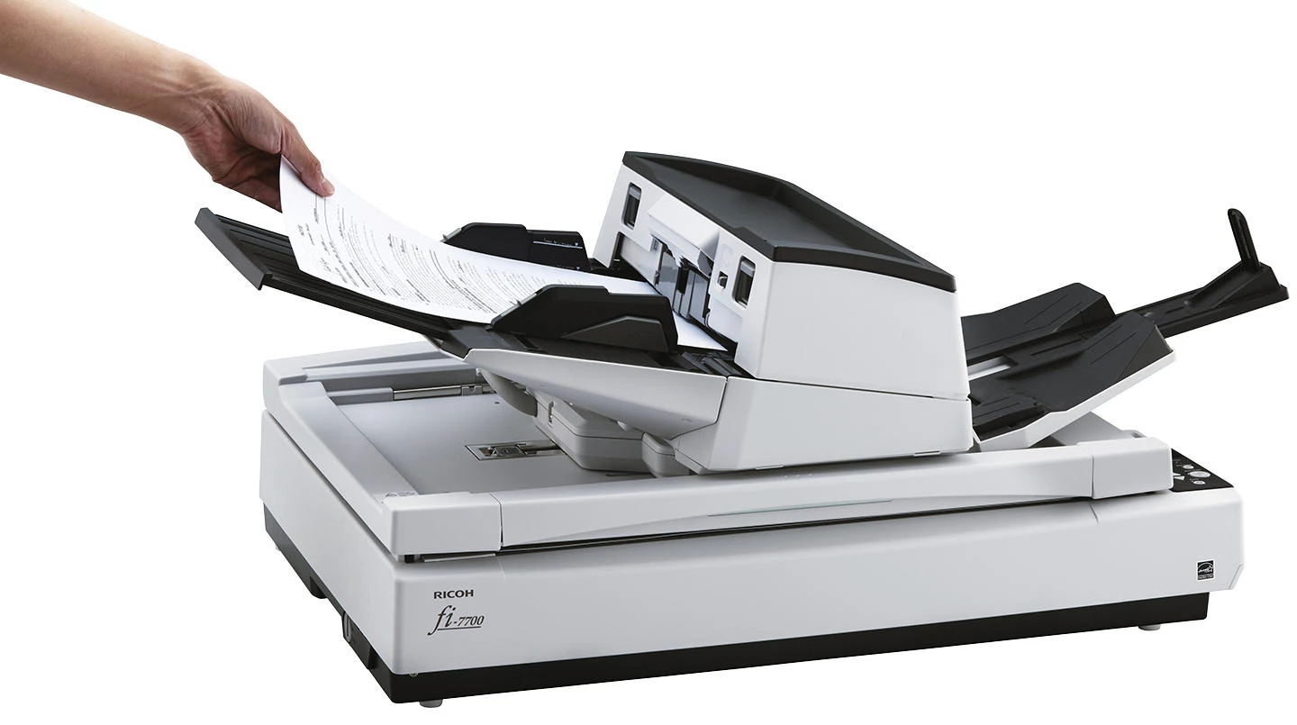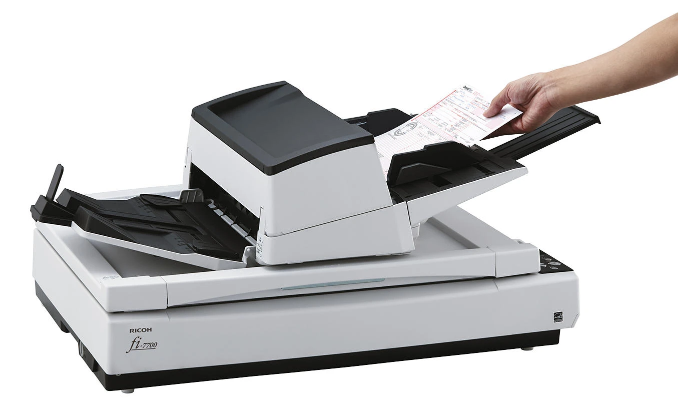 Ricoh fi-7700 – багатофункціональний документ-сканер формату A3, що поєднує автоподатчик, ручну подачу та планшетний блок. Три кольорові ПЗС-матриці забезпечують двостороннє сканування та окрему обробку матеріалів на планшеті. Пристрій підтримує роботу з документами різних розмірів, включно з довгими сторінками та пластиковими картками. Велика місткість автоподатчика та система захисту паперу сприяють стабільному робочому процесу. Розширені інструменти обробки зображень допомагають оптимізувати якість цифрових копій без додаткових дій.