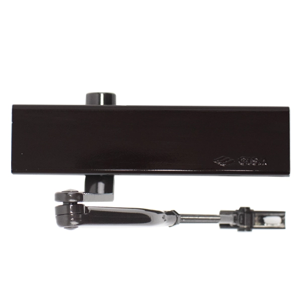 В даній моделі сила закривання EN 2-4 регулюється зміною положення корпусу дотягувача та тяги. В комплектації присутня стандартна тяга без фіксації дверного полотна у відкритому положенні. Проте даний дотягувач сертифікований для використання з протипожежними дверима.