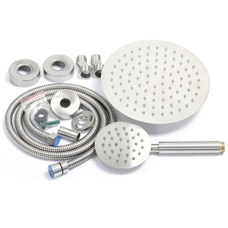 - Комплектація Шланг 150 см, ручна лійка, стельова лійка, чашки, ексцентрики, гумові прокладки, тримач для лійки