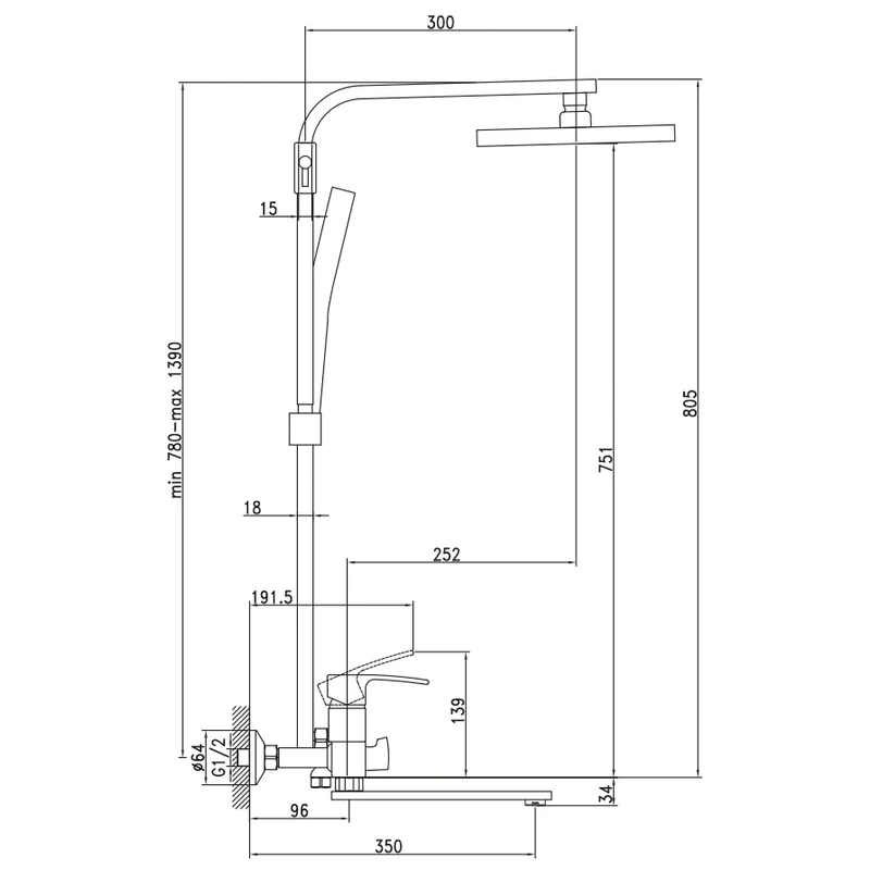 - Комплектація Шланг 150 см, ручна лійка, стельова лійка, чашки, ексцентрики, гумові прокладки, тримач для лійки