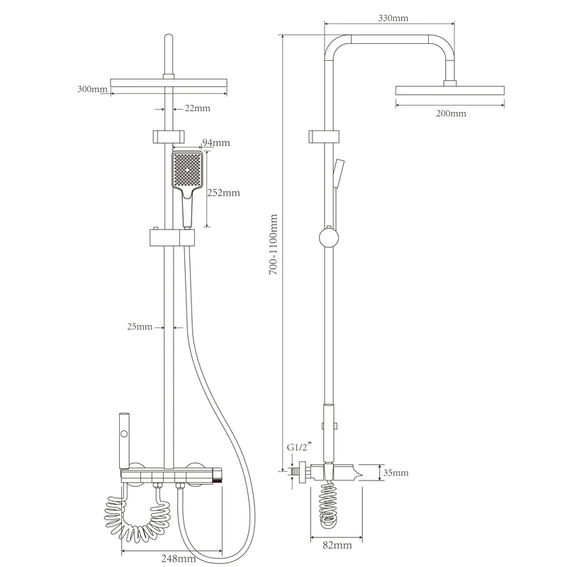 Душова колона зі змішувачем з кнопковим перемикачем з алюмінію ZERIX PBI-009-J BLACK,4 режими (ZX584