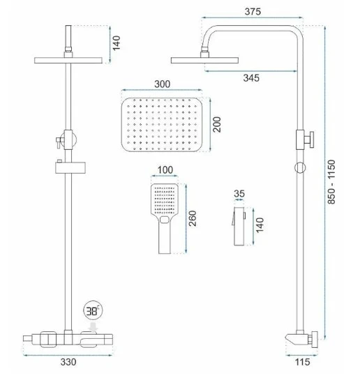 душова система Rea Rob матовий золотий, з термостатом (REA-P6623)