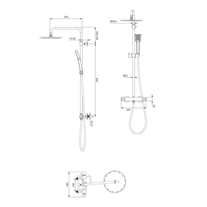 душова система з термостатом Omnires Y black (Y1244NBL)