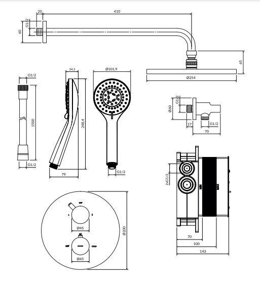 душова система з термостатом Omnires Y brushed gold (SYSYT05GLB)