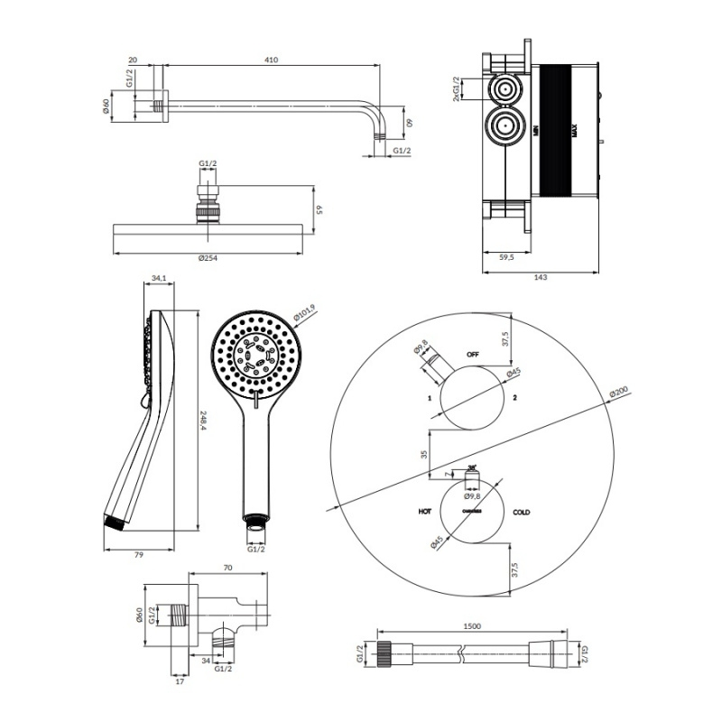 душова система з термостатом Omnires Y chrome (SYSYT05CR)