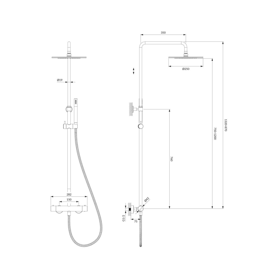 душова система з термостатом Omnires Y chrome (Y1244SUCR)