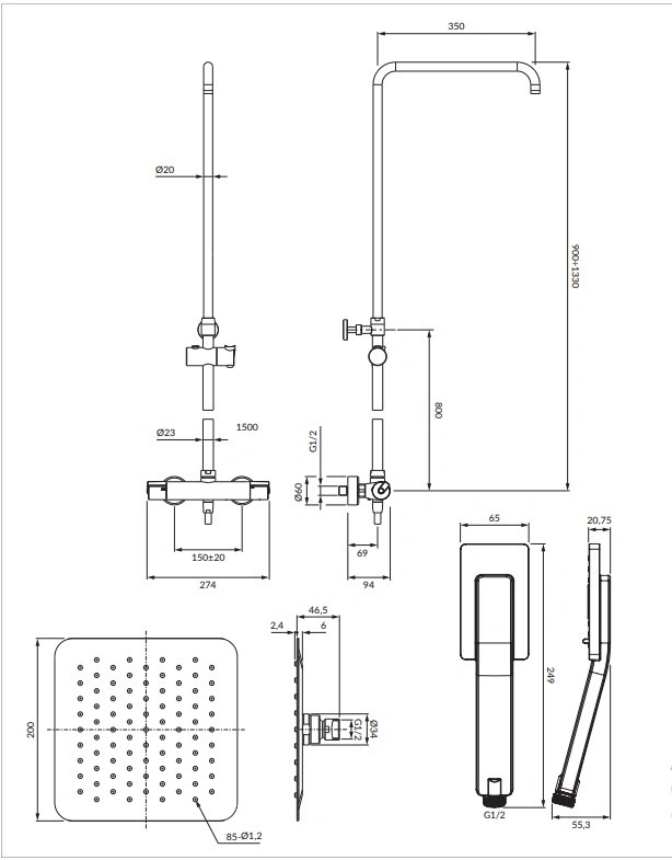 душова система з термостатом Omnires Y chrome (Y1244XMCR)