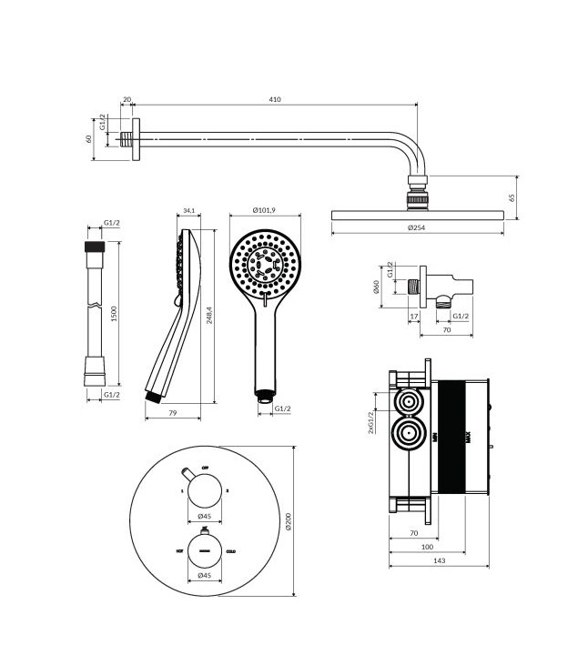 душова система з термостатом Omnires Y copper (SYSYT05CP)