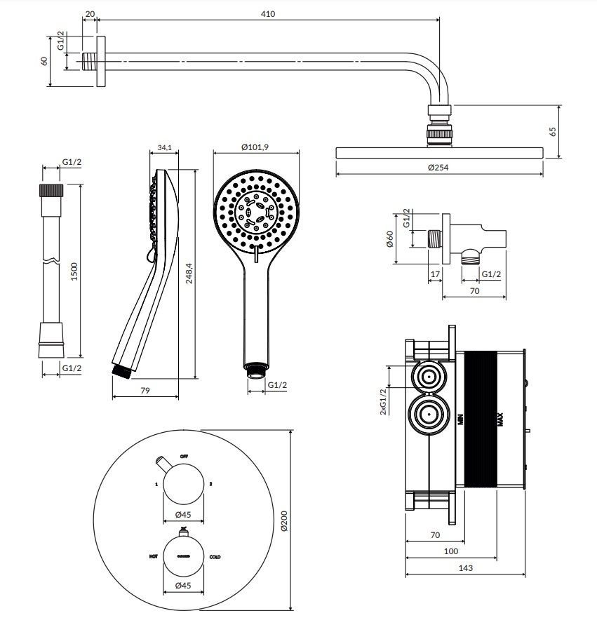 душова система з термостатом Omnires Y grafit (SYSYT05GR)
