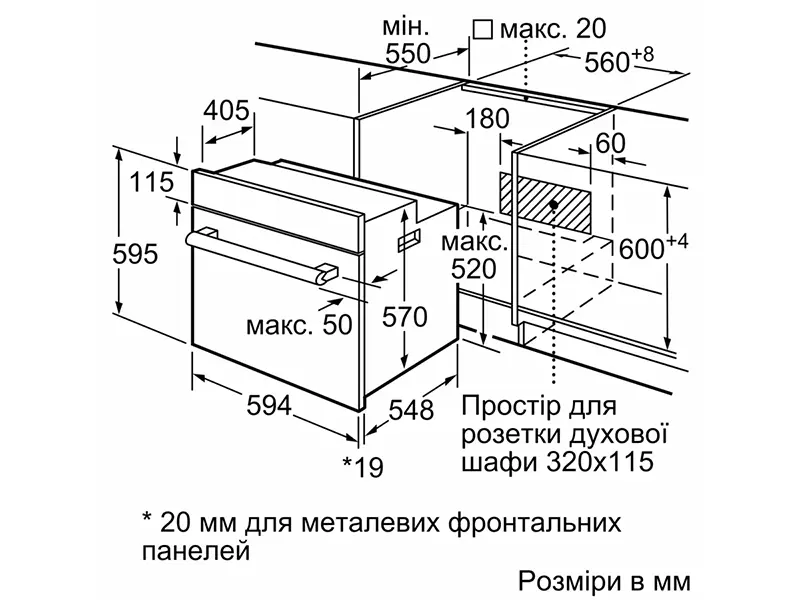 * Розміри ніші (ВxШxГ): 575 - 597 x 560 - 568 x 550 мм