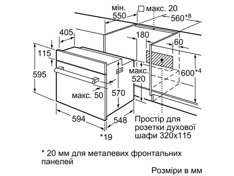Розміри приладу (В-Ш-Г): 59.5-59.4-54.8 см