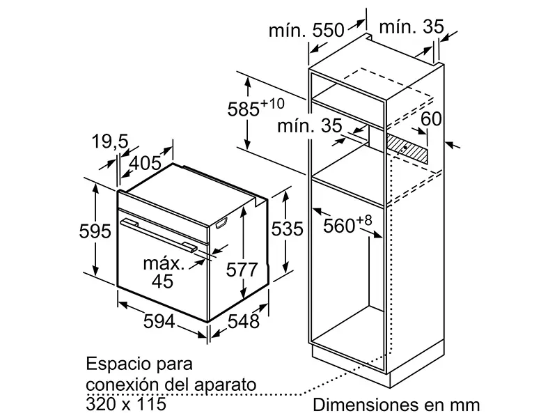 Розміри ніші (ВхШхГ): 585 мм - 595 мм x 560 мм - 568 мм x 550 мм