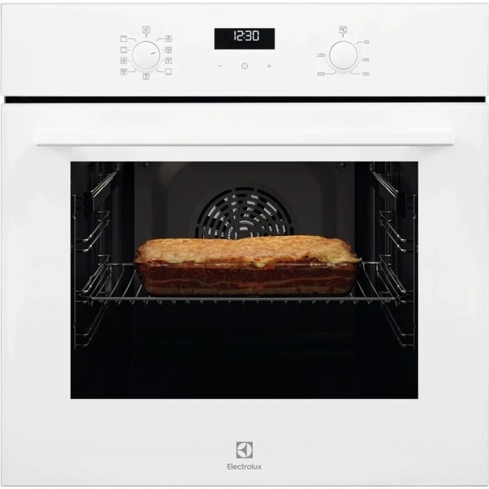 Електрична духова шафа Electrolux EOF5F50BV — це сучасний вбудовуваний пристрій із багатофункціональними можливостями. Завдяки об’єму 65 літрів та класу енергоефективності A, вона забезпечує економічне споживання енергії при високій продуктивності. Окрім стандартних режимів, таких як гриль, традиційне запікання і конвекція, духовка оснащена телескопічними напрямними для зручності та безпеки. Каталітичне очищення спрощує догляд за приладом, а сучасний LED-дисплей дозволяє легко налаштовувати програми. Білий колір корпусу додає елегантності будь-якій кухні