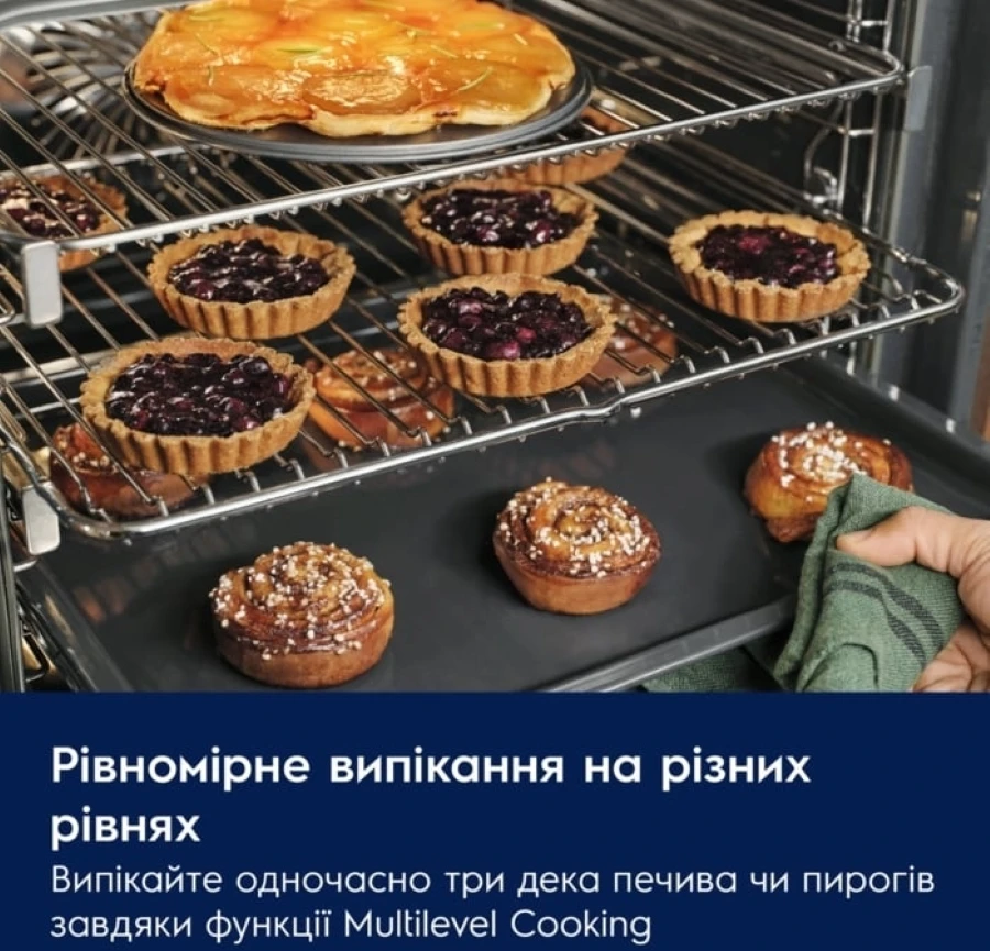 Духова шафа Electrolux електрична, 65л, A, дисплей, конвекція, телескопічні напрямні, чорний